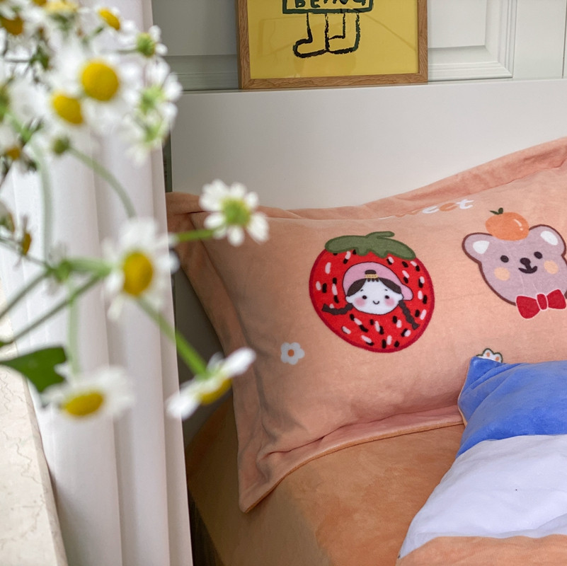 (总)柚子YOUTH 2025新款加厚牛奶绒卡通毛巾绣四件套-印加绣送同款毛毯,蛋糕小狗,公主猫,头套猫,兔兔花园,小伙伴,雪纳瑞