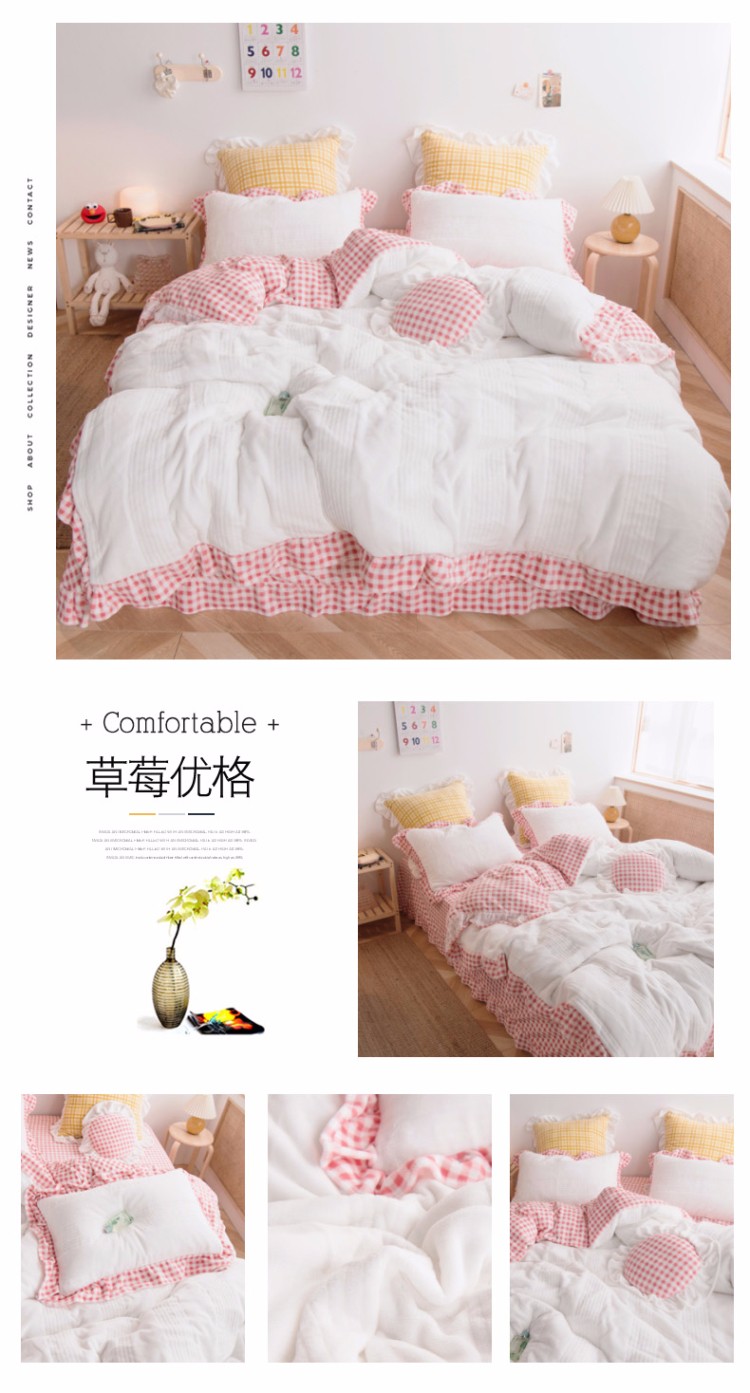 商品名称:漫调 2020新款奶油系软糯牛奶绒夹棉四件套 草莓优格
