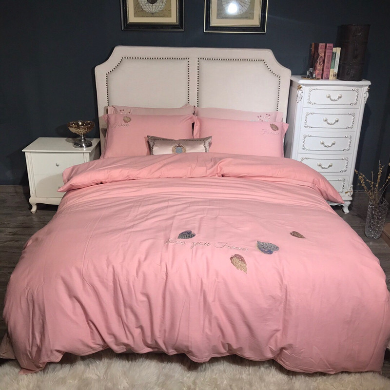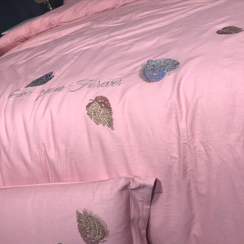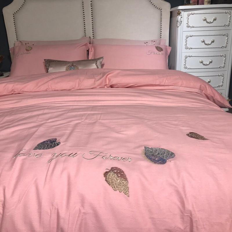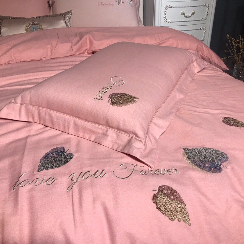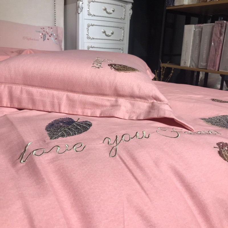 玖玖爱 2020新款全棉生态磨毛刺绣四件套 潇湘玉叶粉玉
