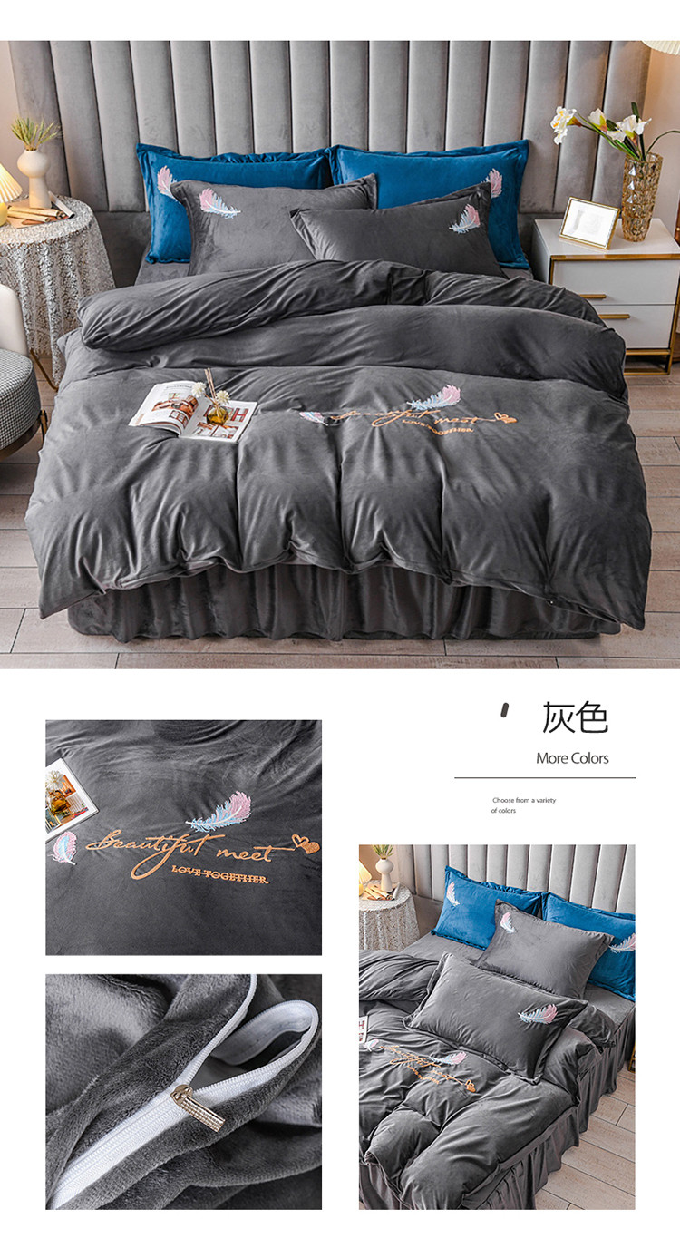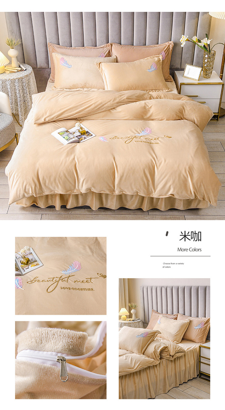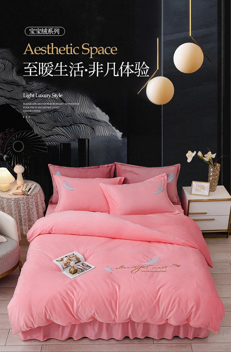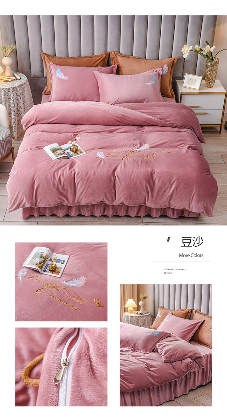 (总)金米诺 2020新款宝宝绒绣花四件套