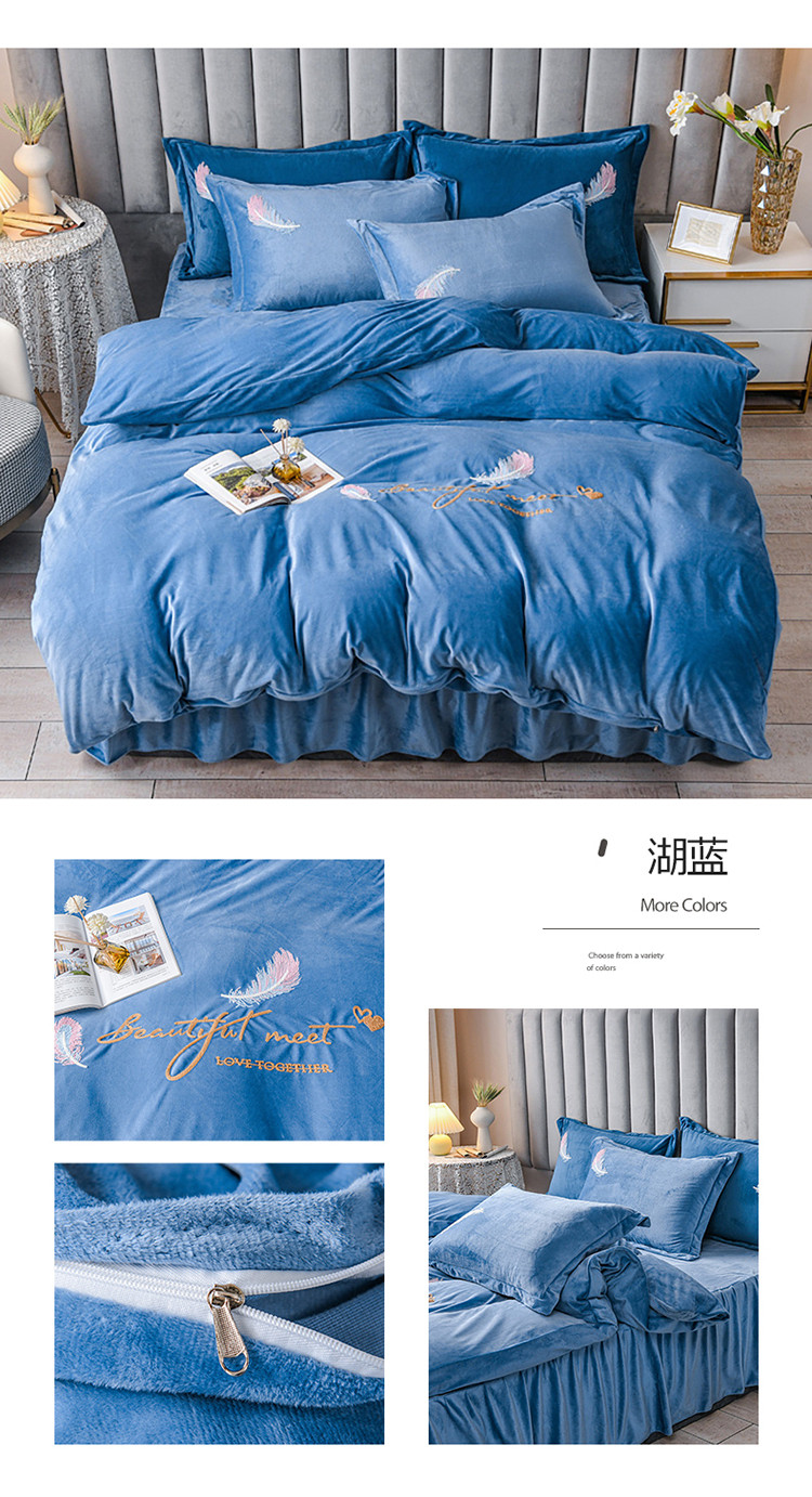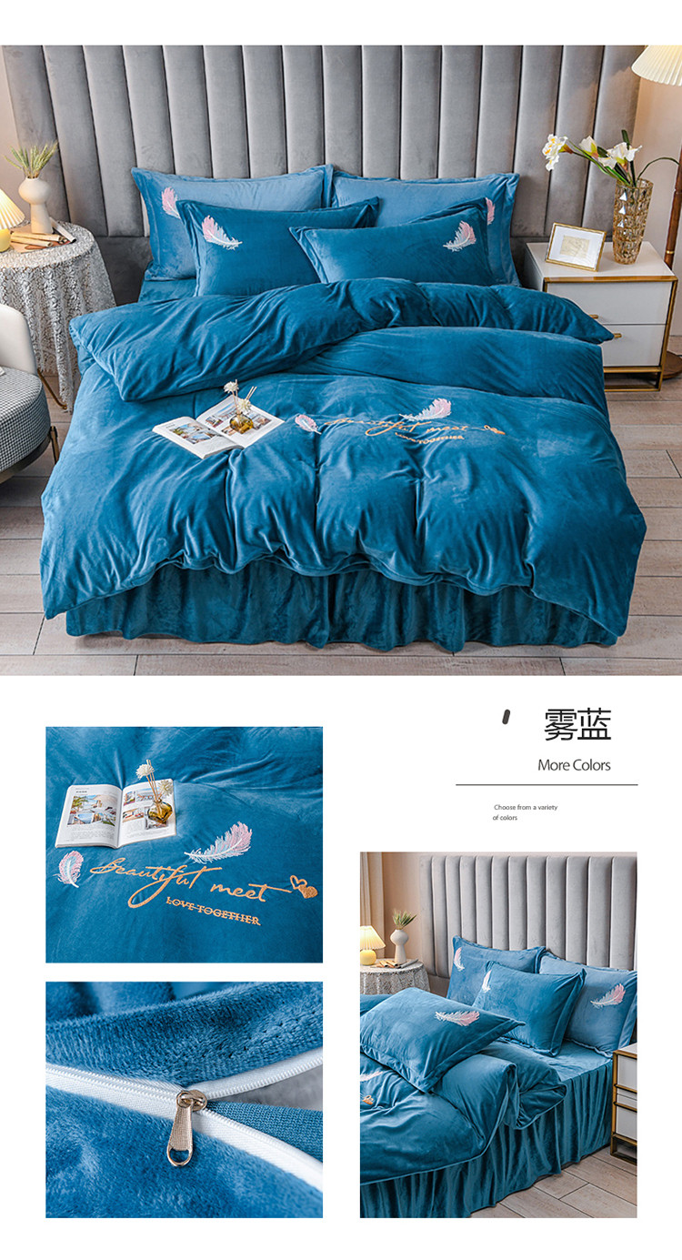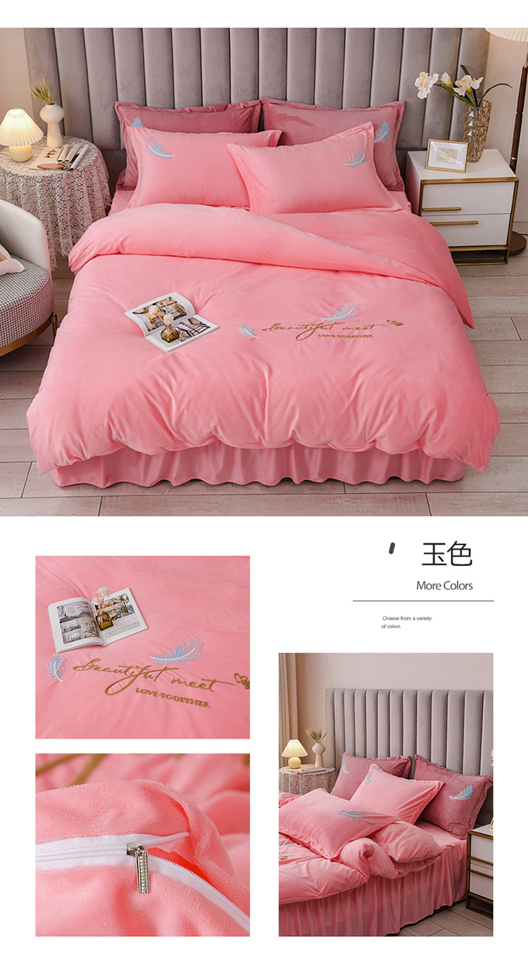(总)金米诺 2020新款宝宝绒绣花四件套