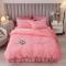 金米诺 新款韩版花边水洗棉泡泡纱四件套公主条四件套 褶皱-浅粉,褶皱-浅粉