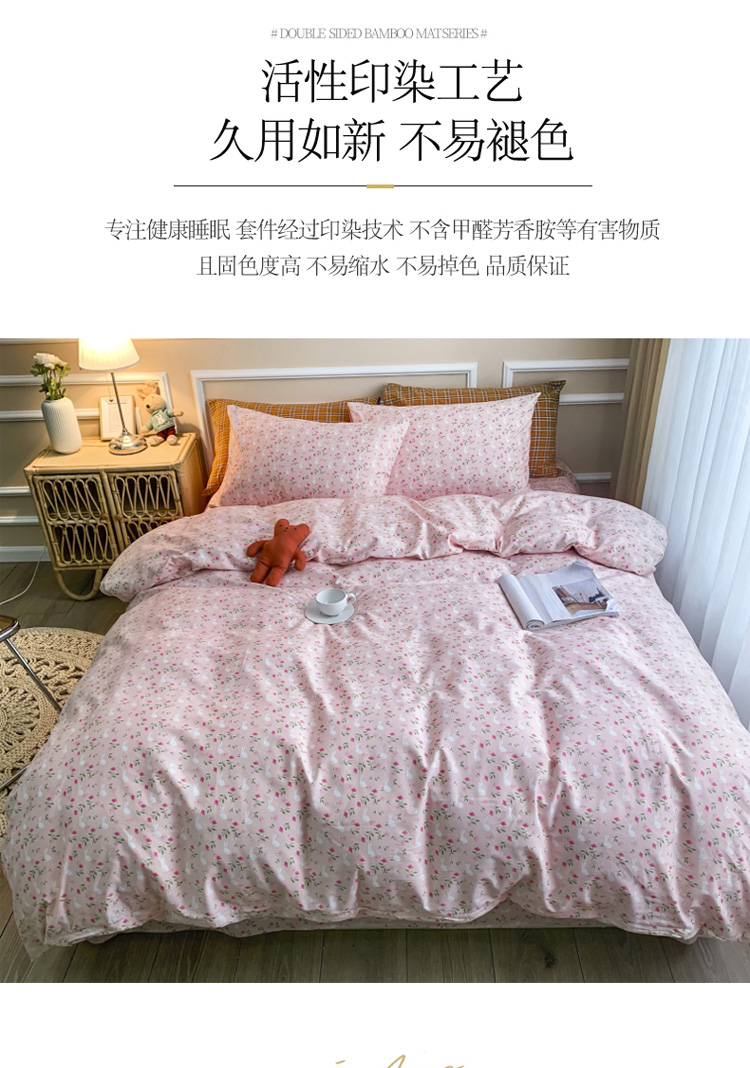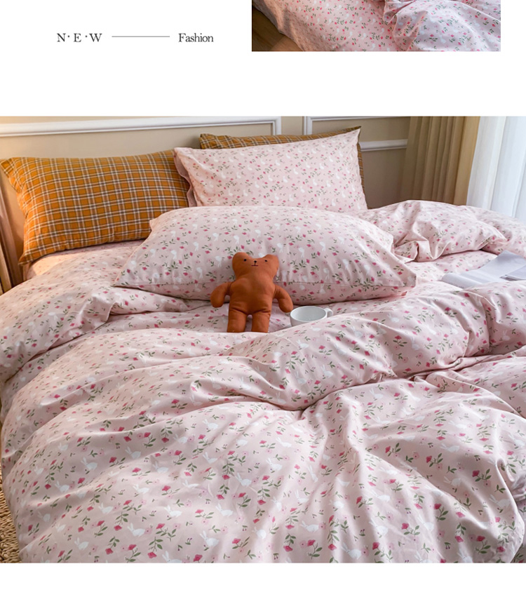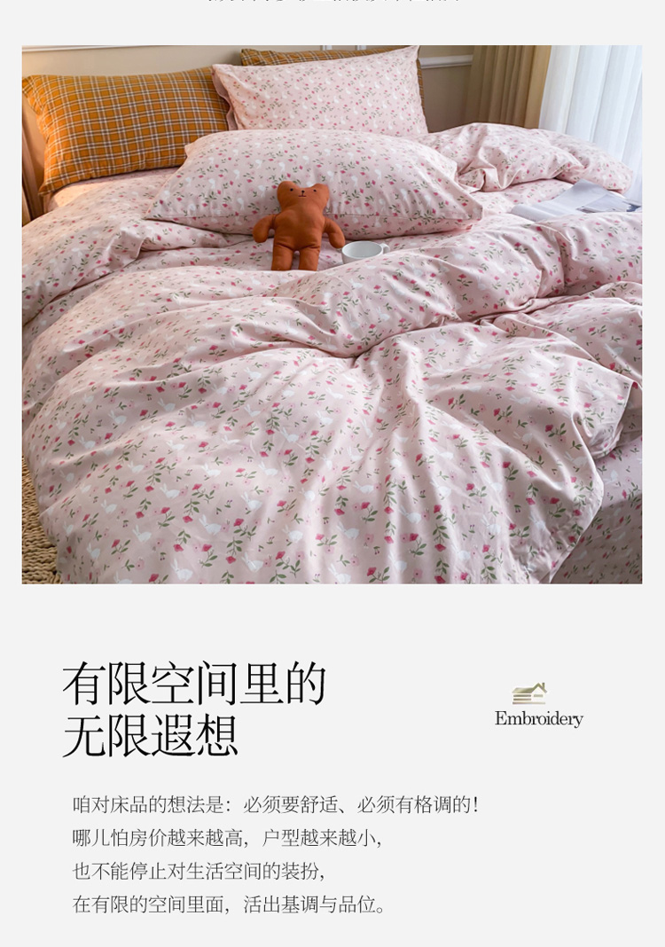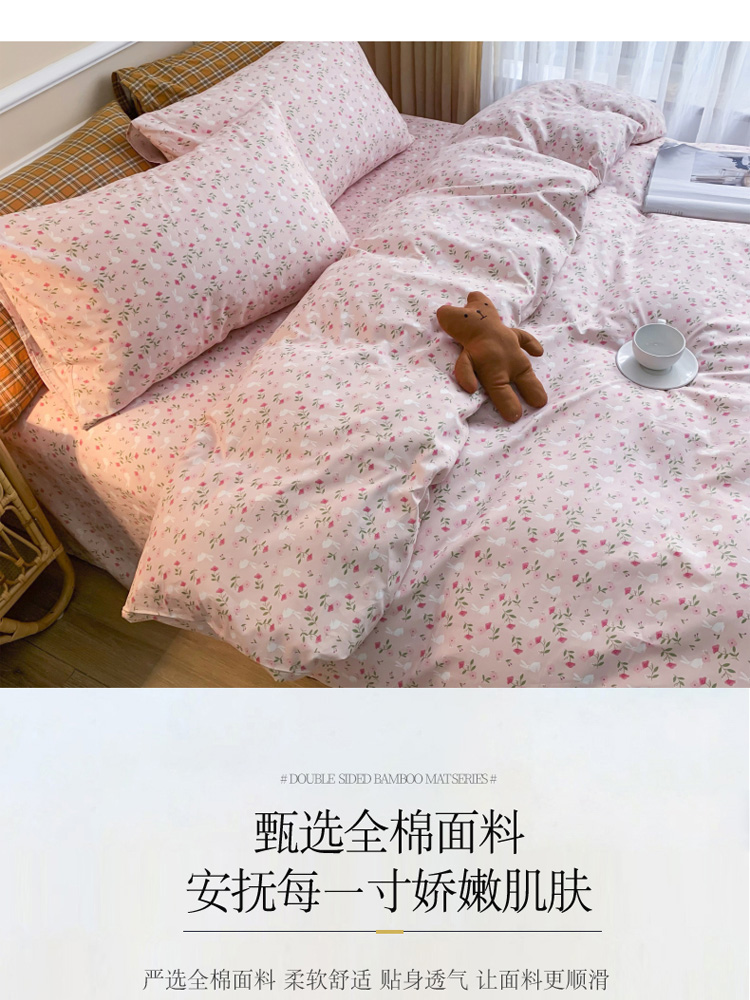 (总)感遇家纺 2025新款小清新甜系全棉四件套,百丽兔,波点小女孩,点点小狗,复古樱桃,格子草莓,格子樱桃,花间牧歌,灰条猫咪,奶绿,宁夏,森林小熊猫,甜心波点