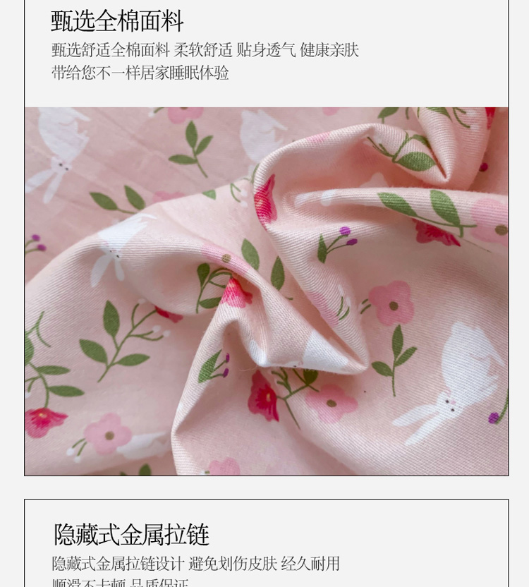 商品名称:感遇家纺 2020新款全棉亲肤印花四件套三件套-缘冬系列 花间小兔