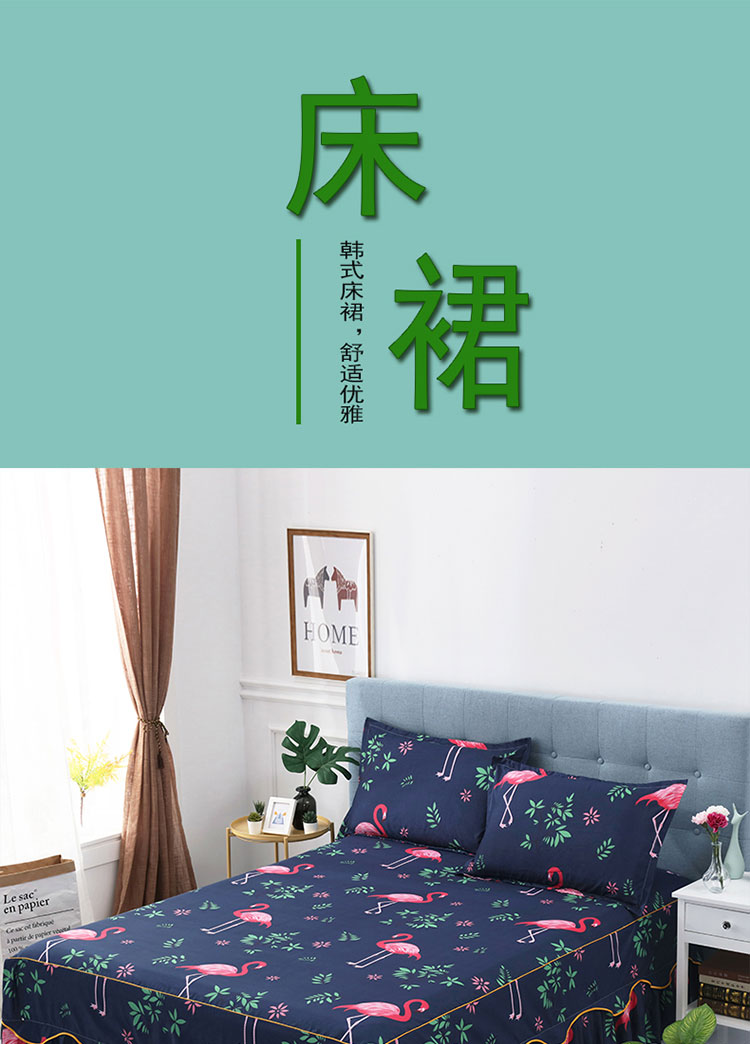 商品名称:笠裙家纺 韩版公主风床裙防滑SS床裙床罩 火烈鸟