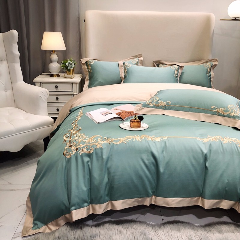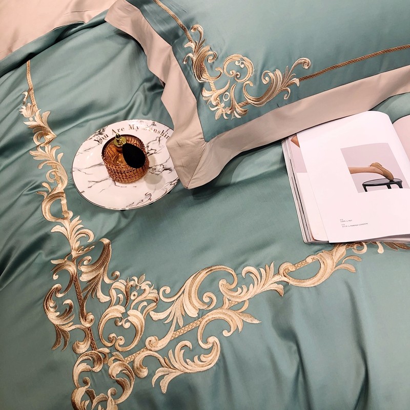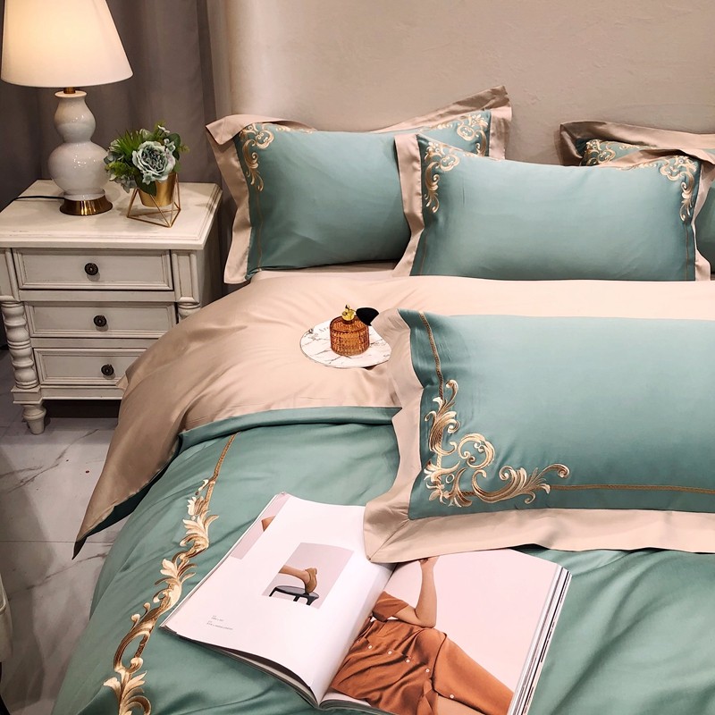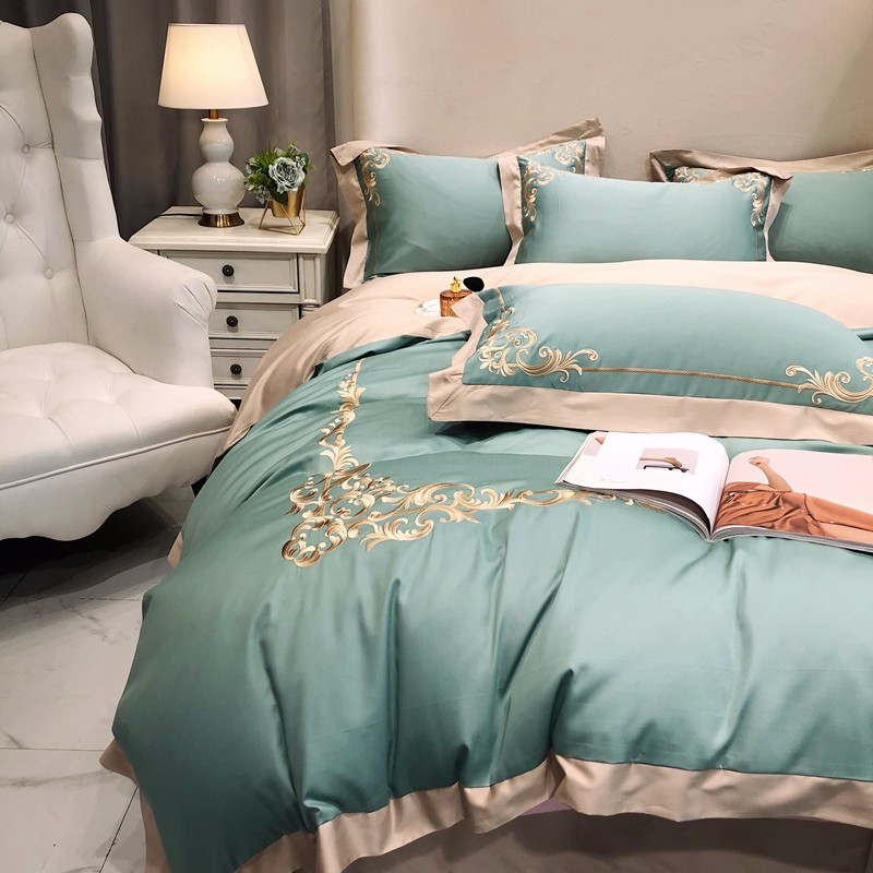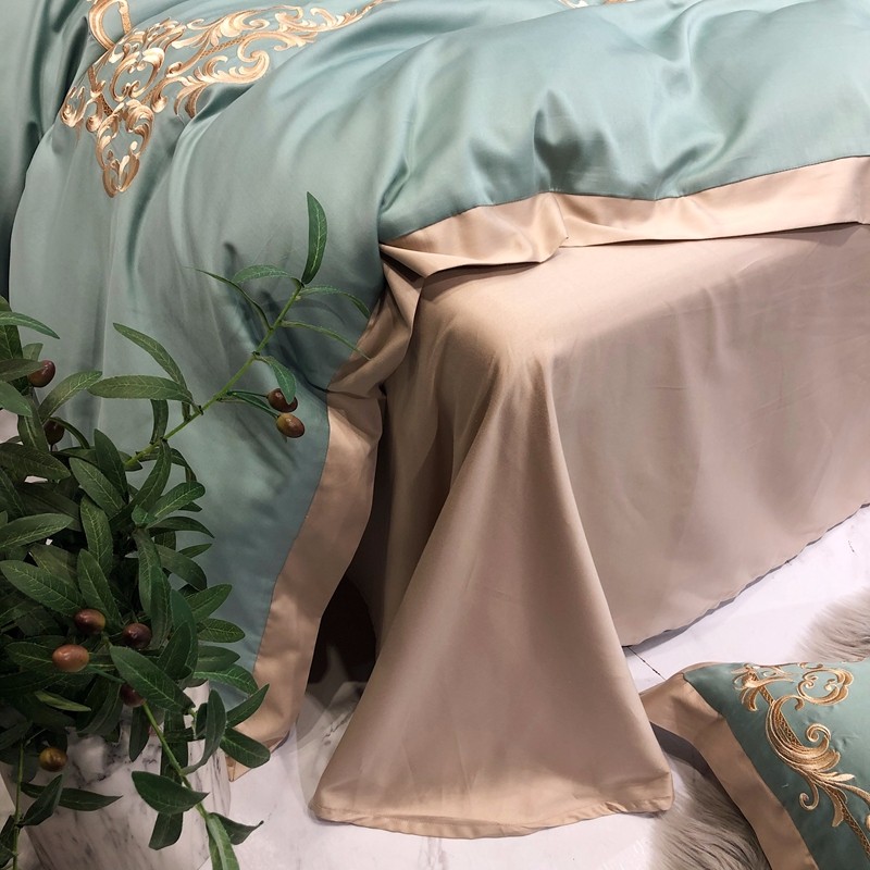 馨蕊家居 2021新品春夏高定100支格调四件套豆绿