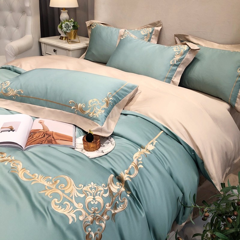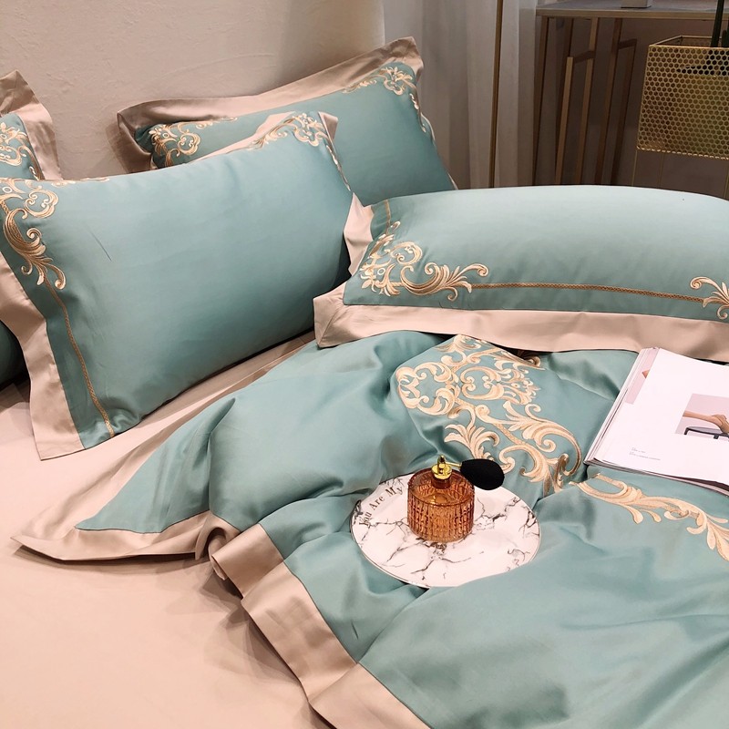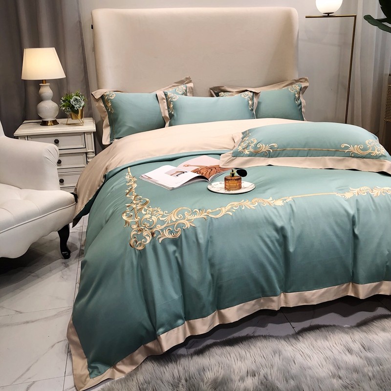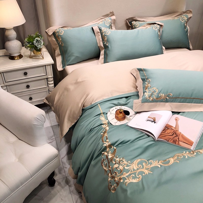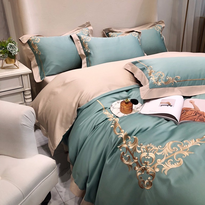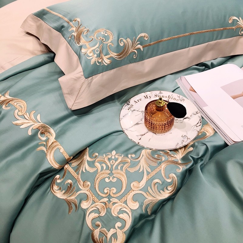 馨蕊家居 2021新品春夏高定100支格调四件套豆绿