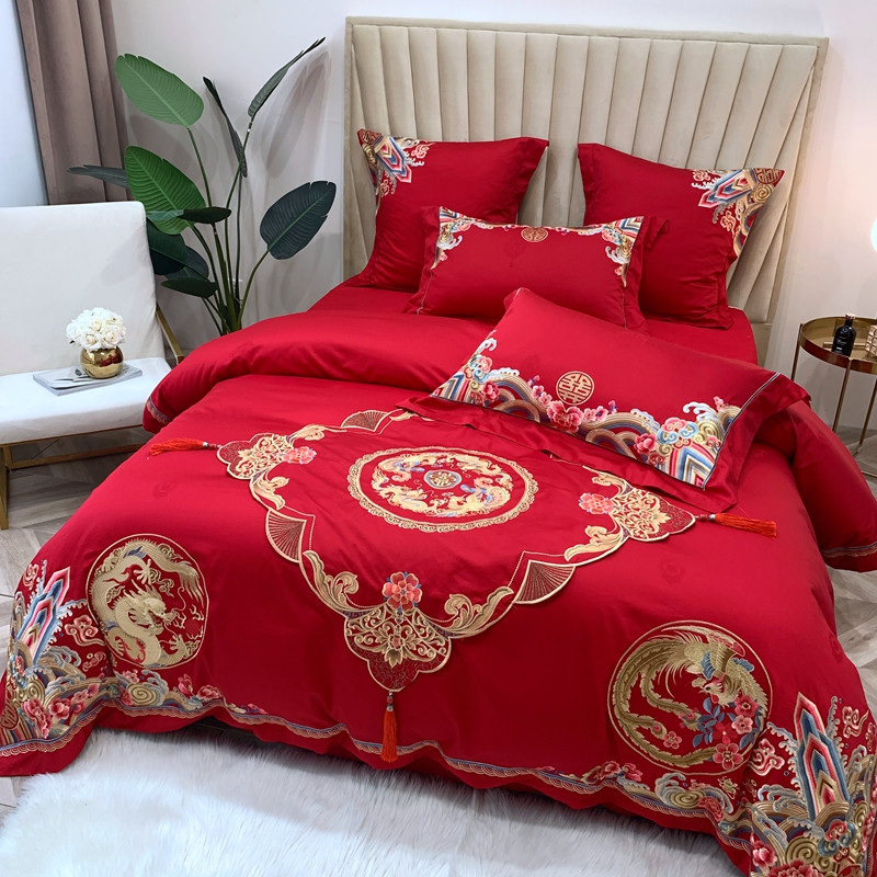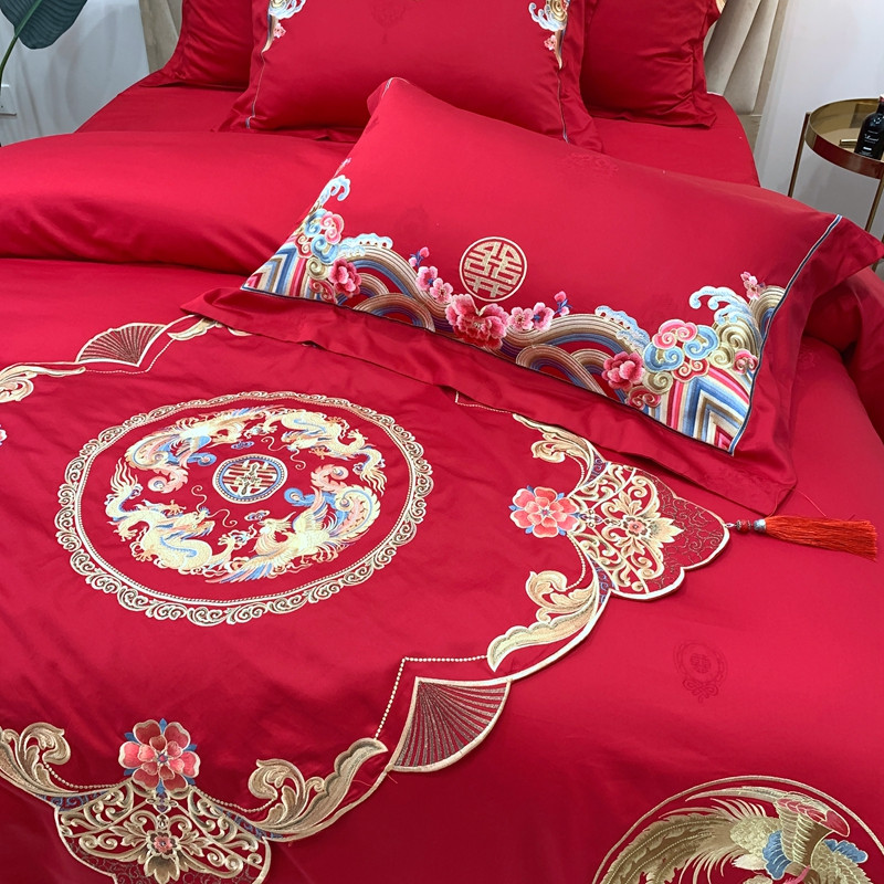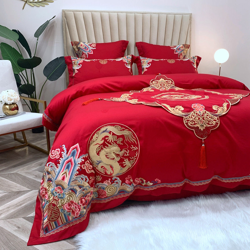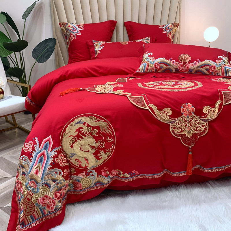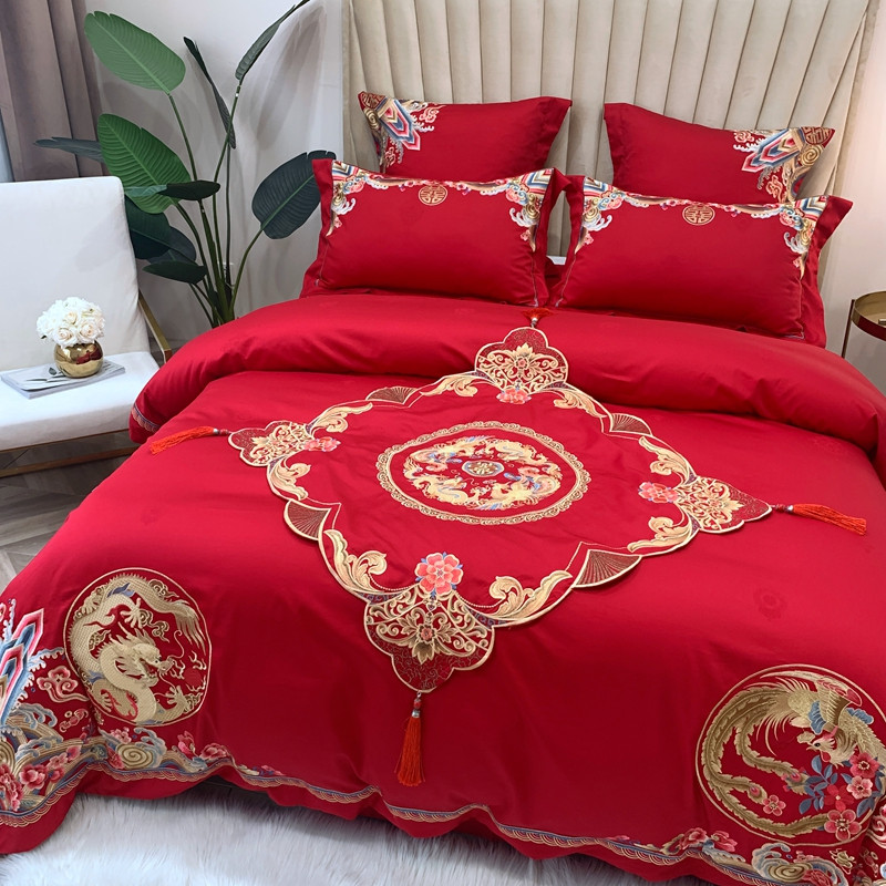 商品名称:(总)馨蕊家居 2021高端婚庆100支系列龙凤奇缘四件套