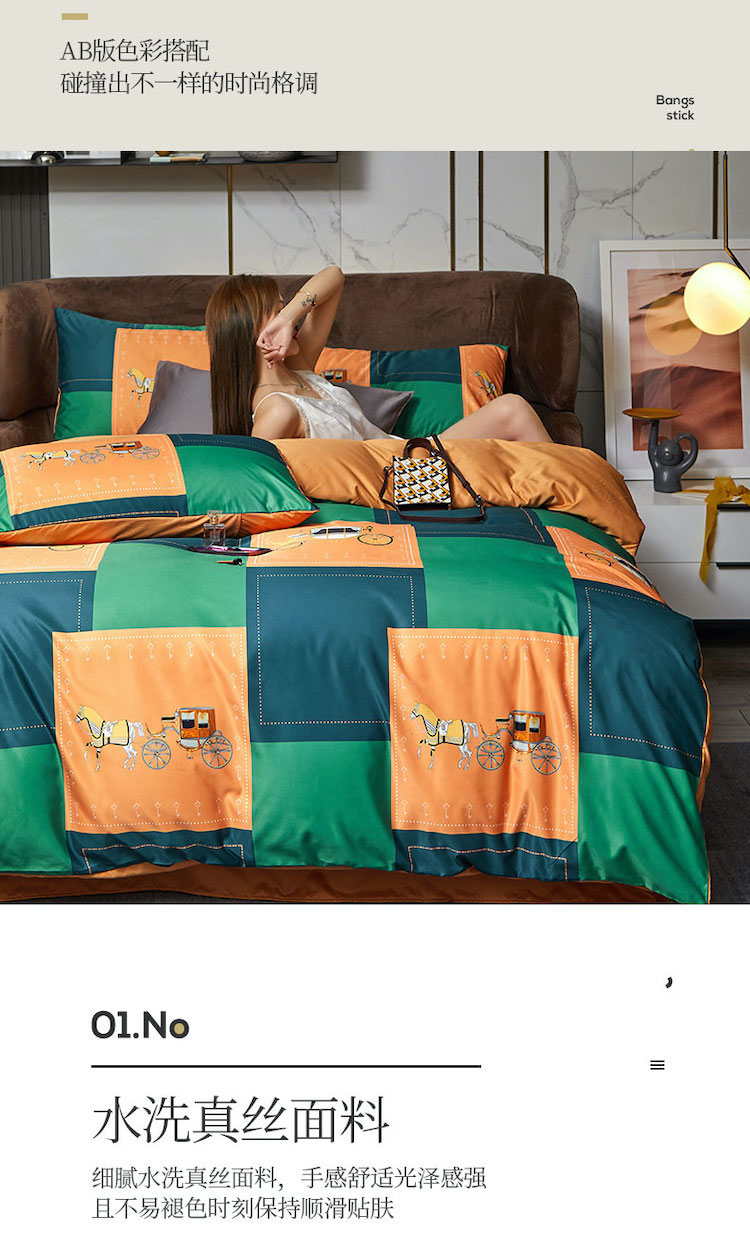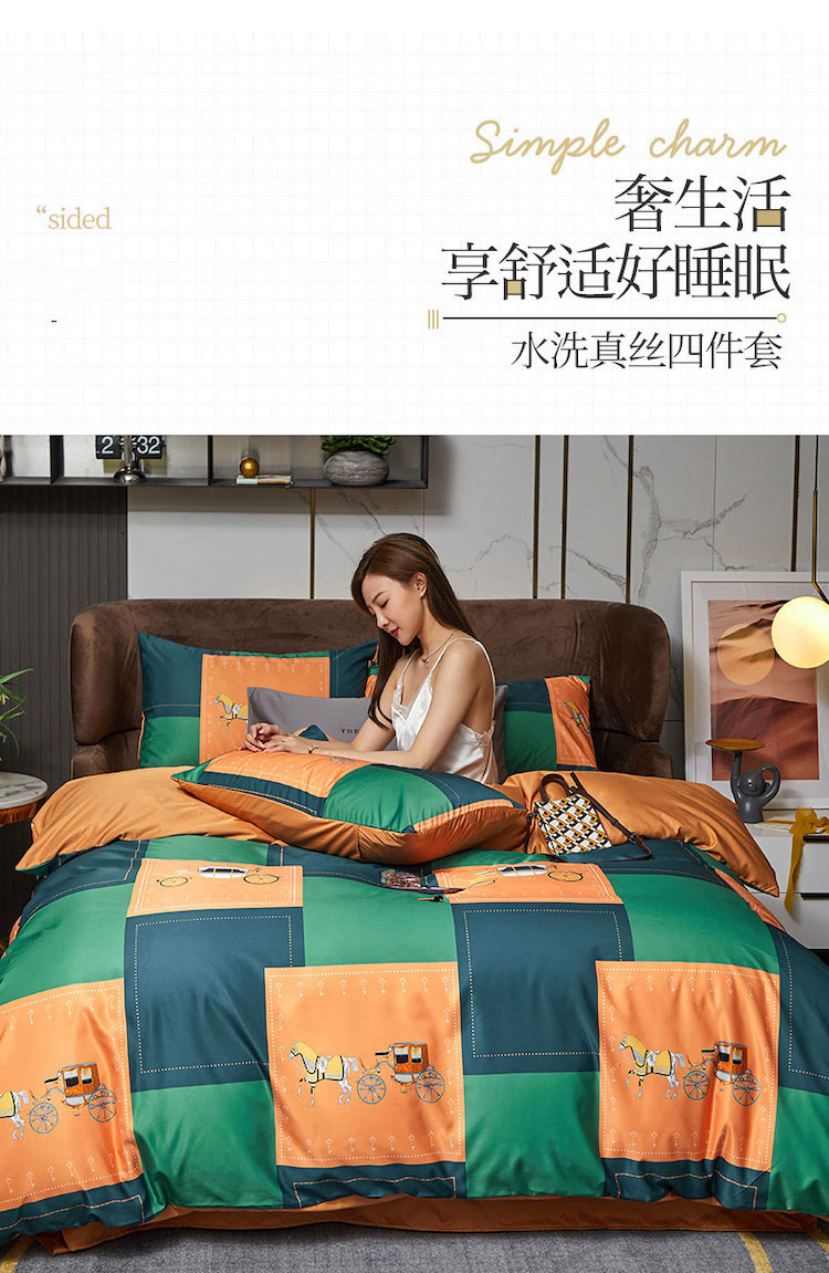 商品名称:凡客 2021春夏新款60支水洗真丝数码印花四件套轻奢风系列 佛罗伦萨