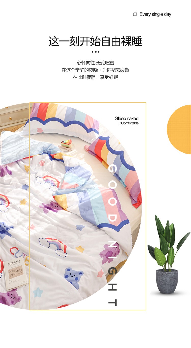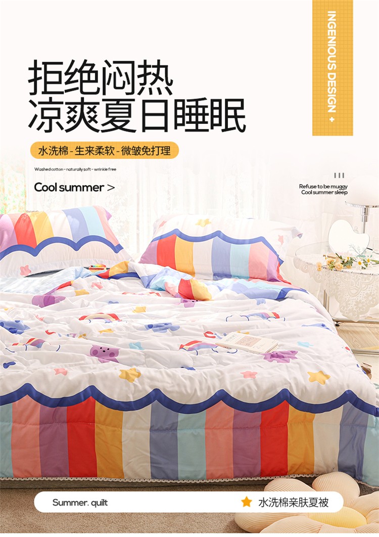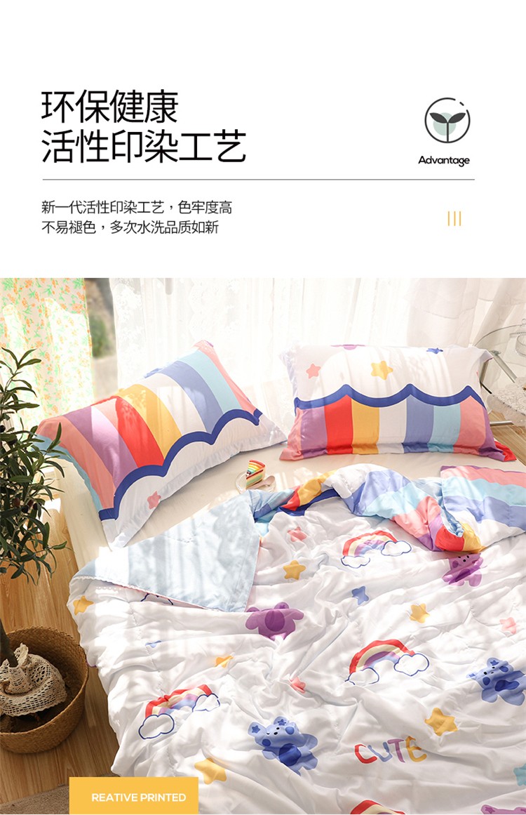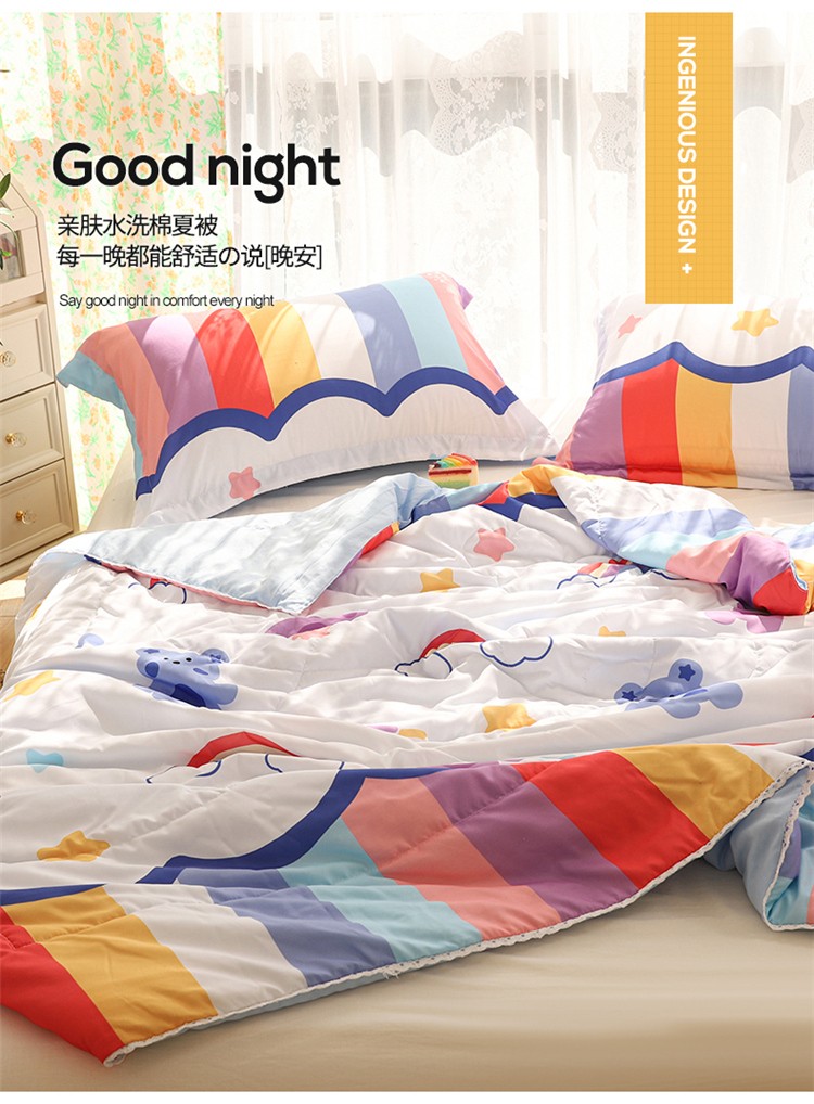 商品名称:慕尚 2025新款水洗棉夏被实拍图 彩虹熊