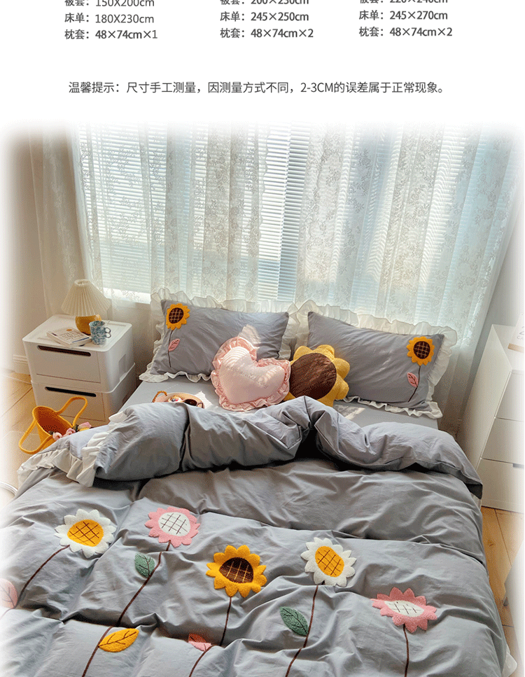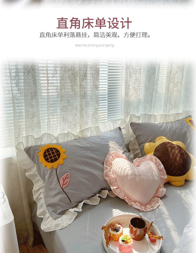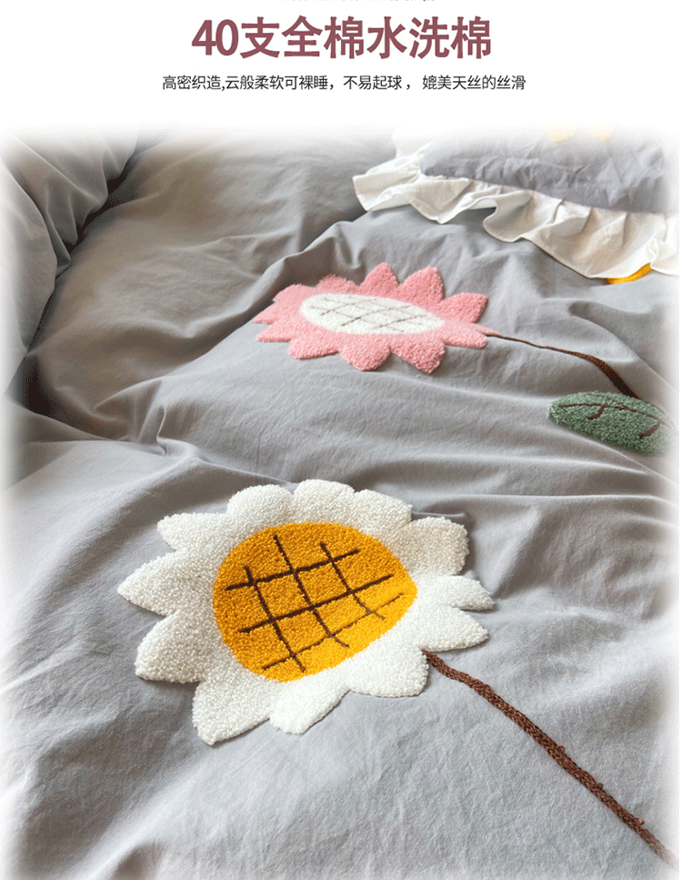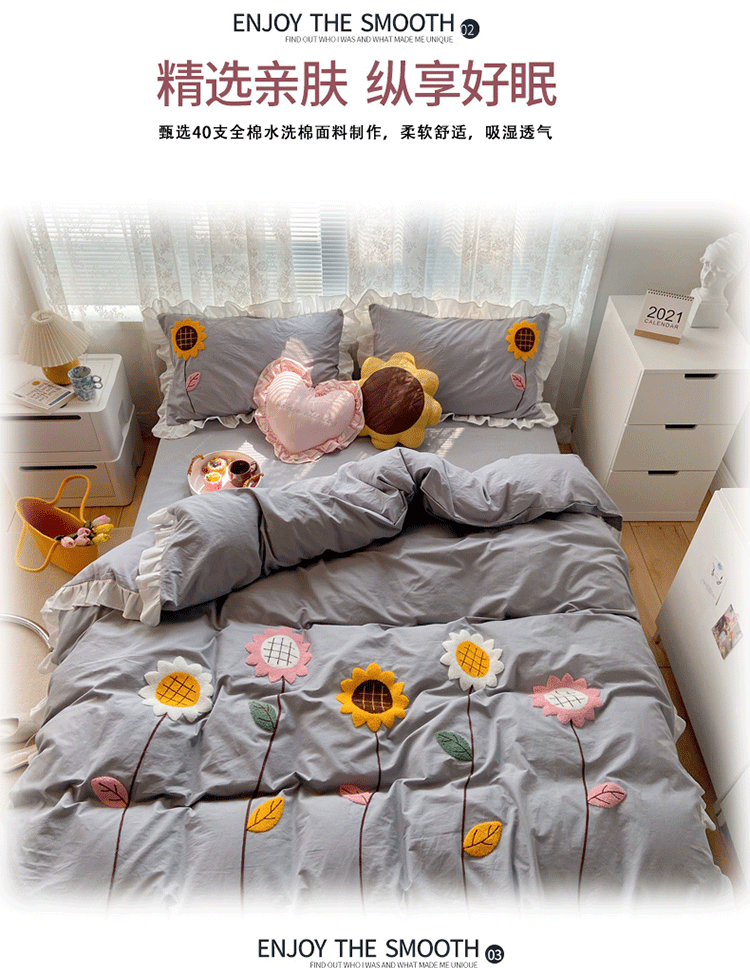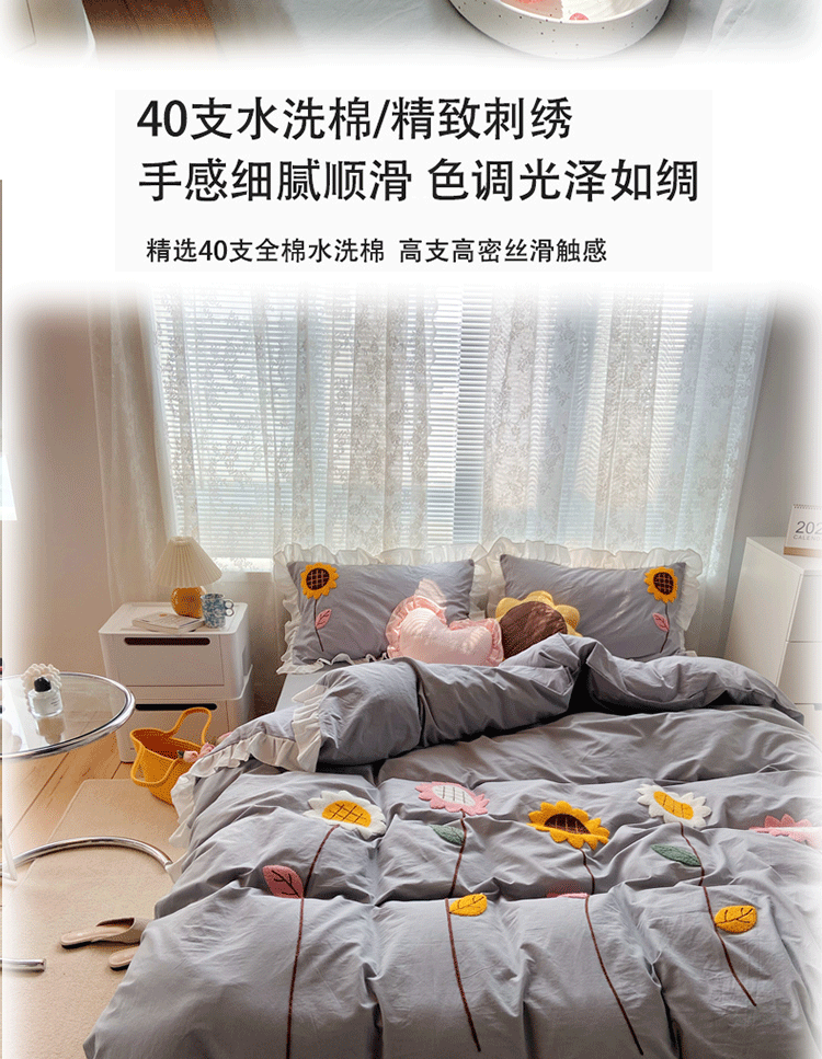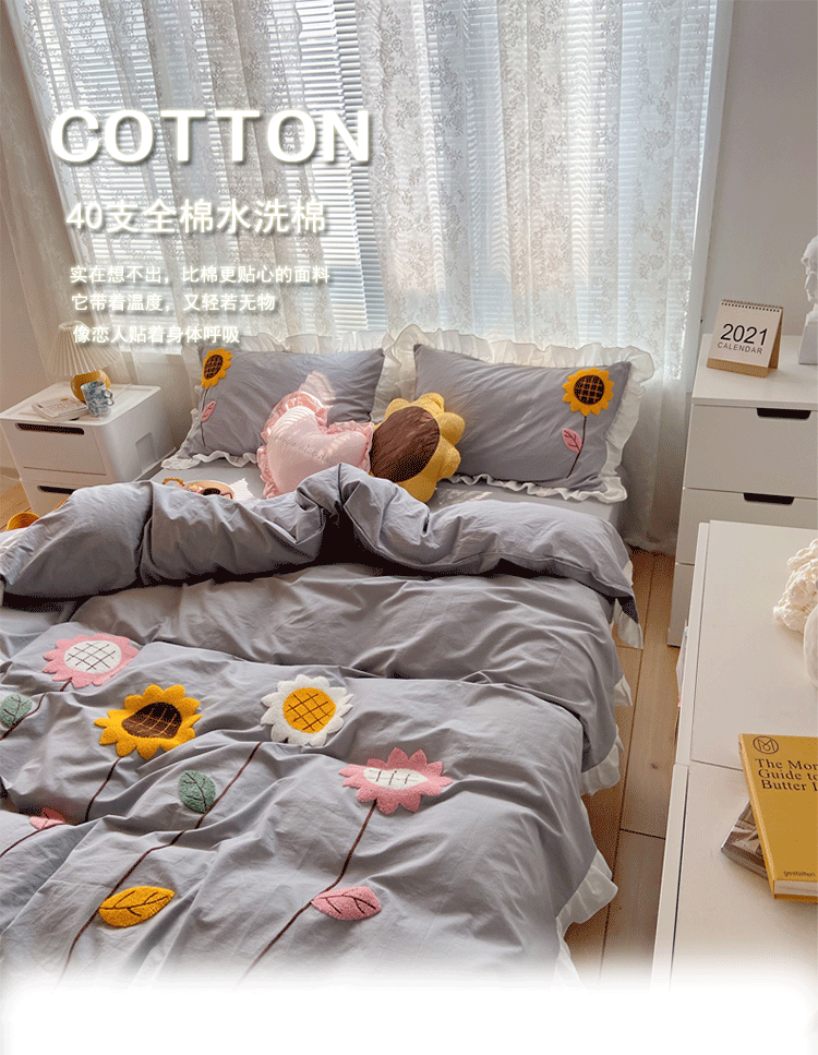 淑女公社 2021新款全棉毛巾绣向日葵系列四件套 灰色