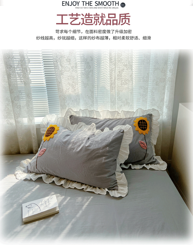 商品名称:淑女公社 2021新款全棉毛巾绣向日葵系列四件套 灰色