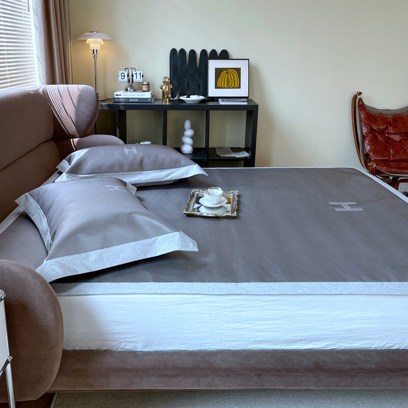 时年2021新水洗冰露丝养生席数码印花-轻奢风格二H-咖色2