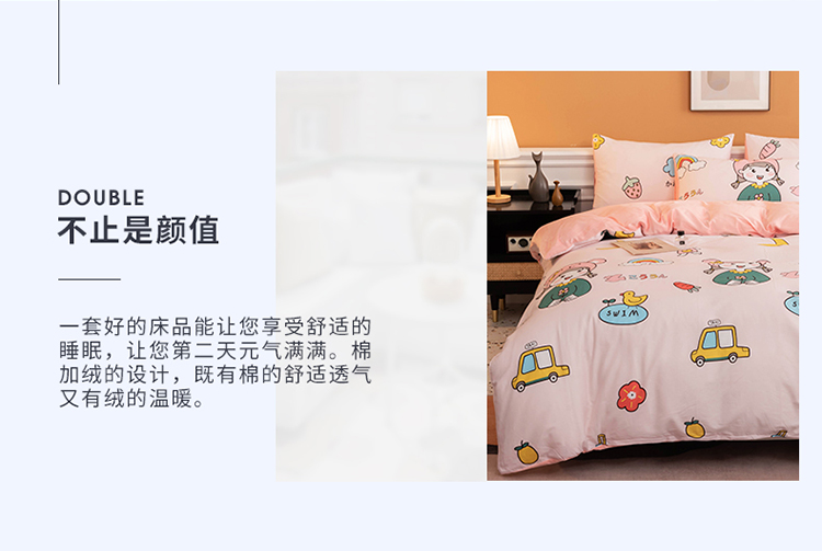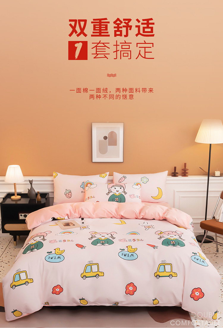 当前位置: 91家纺网 > 商品网购 > 床品套件 > 四件套 > 全棉普通四件套 > 芃成家纺 2021新款棉加绒四件套 可爱多