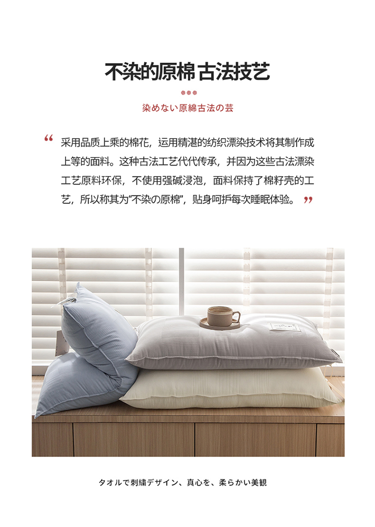 头等舱 2022新款原棉提花日式A类朴染抗菌大豆枕芯 朴染灰