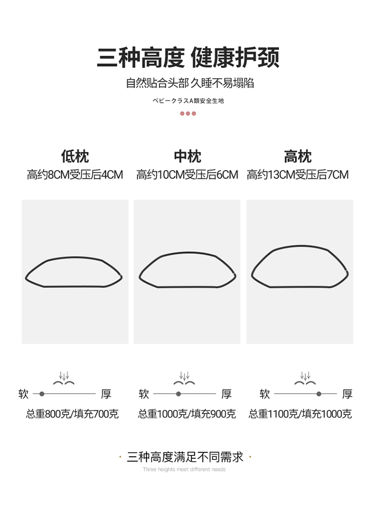 (总)头等舱 2025新款全棉A类三防酒店抗菌枕头枕芯,低枕,中枕,高枕