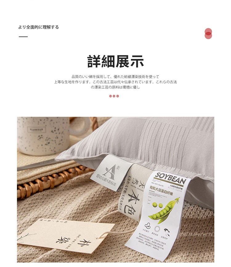 商品名称:头等舱 2022新款原棉提花日式A类朴染抗菌大豆枕芯 朴染灰
