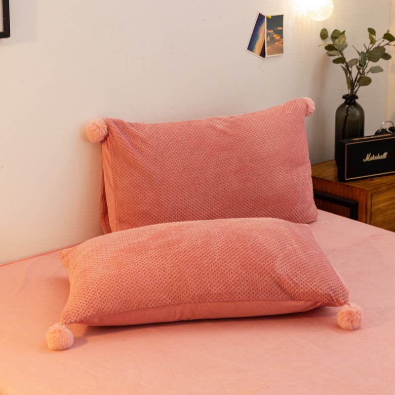 仟网汇 2021新款贝贝绒球球款保暖四件套 玉色