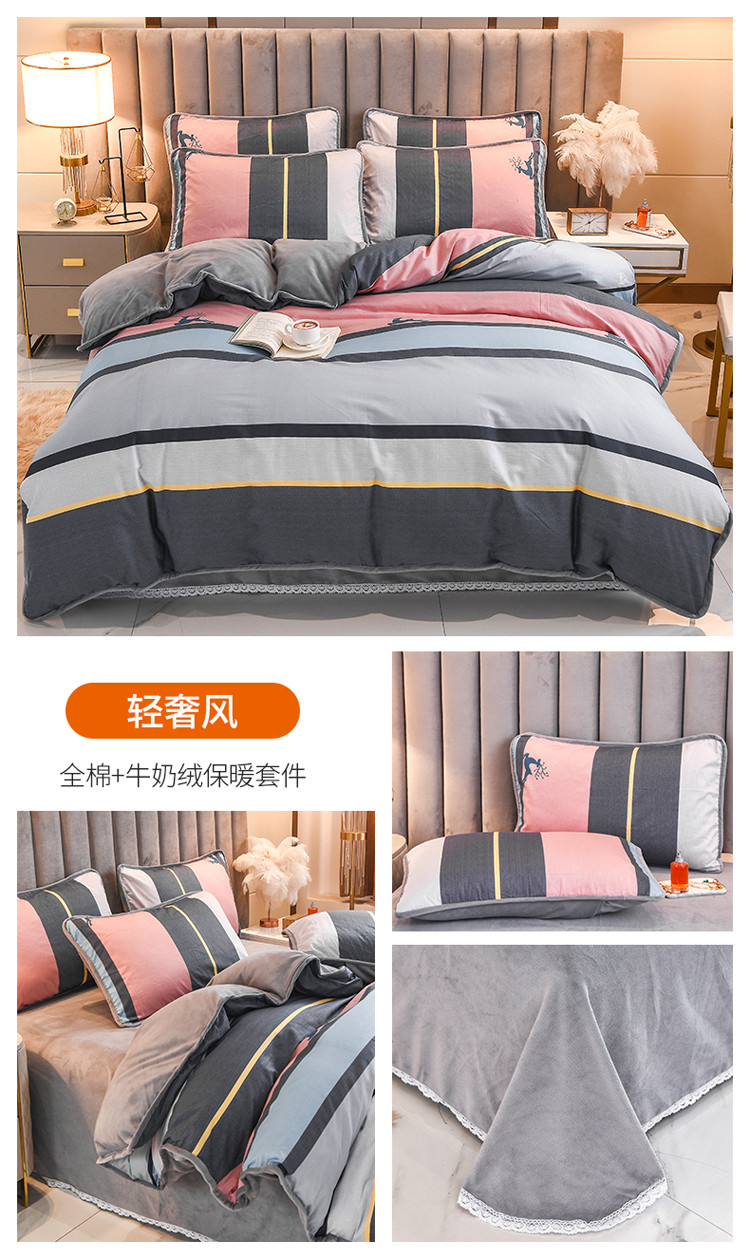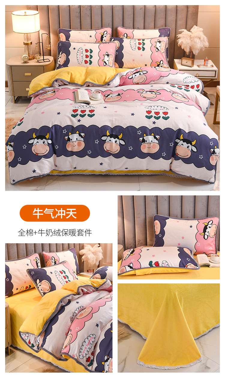 (总)琪琪阁 2021新款全棉+牛奶绒四件套