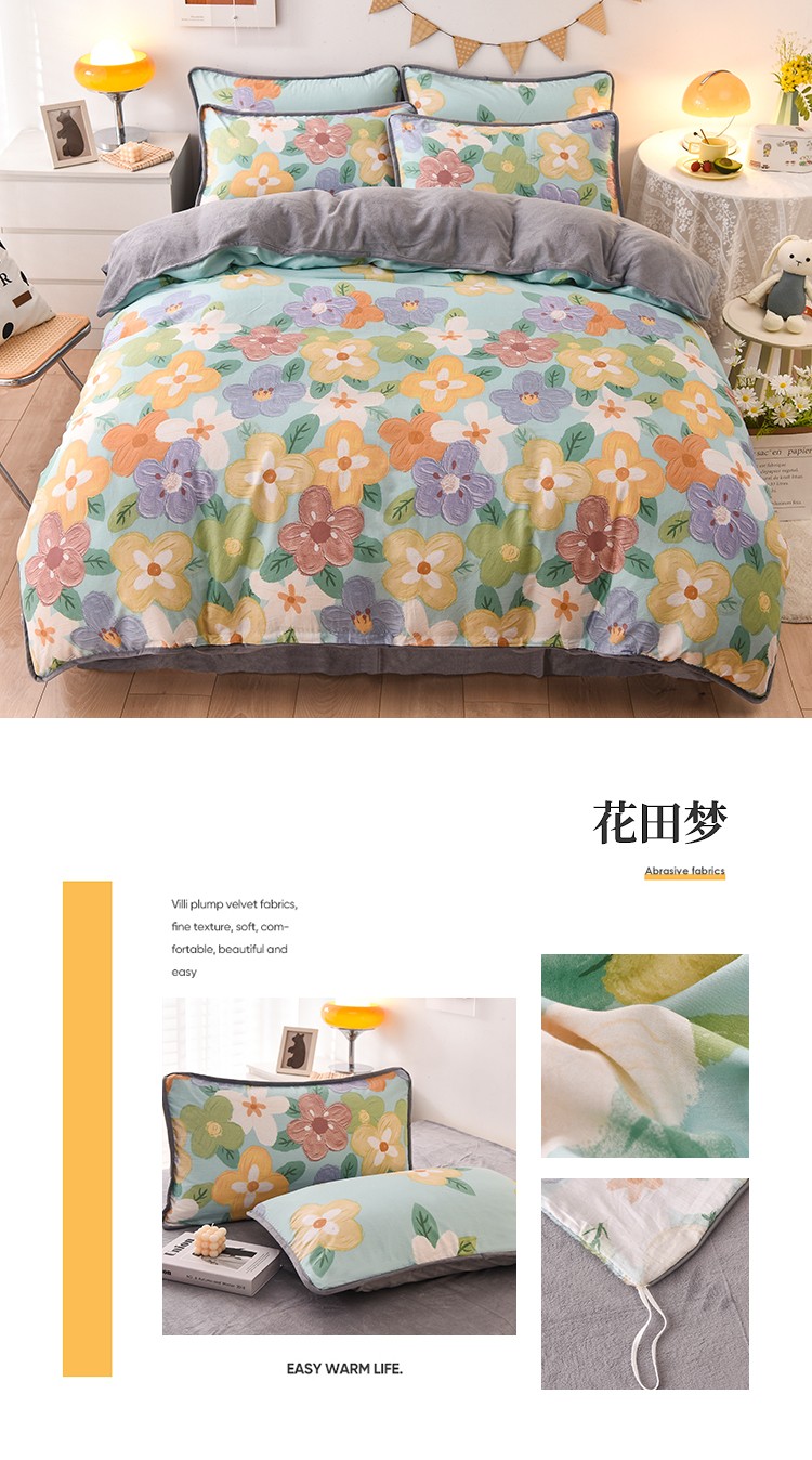 琪琪阁 2023新款A棉B绒棉加绒牛奶绒四件套单被套 宁静生活,宁静生活