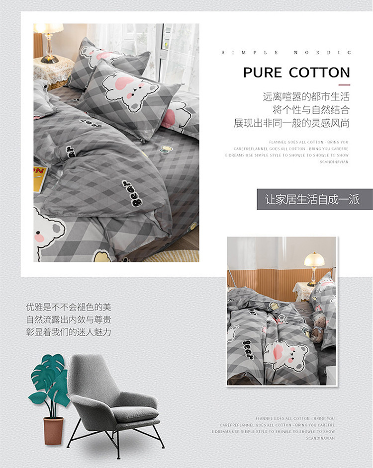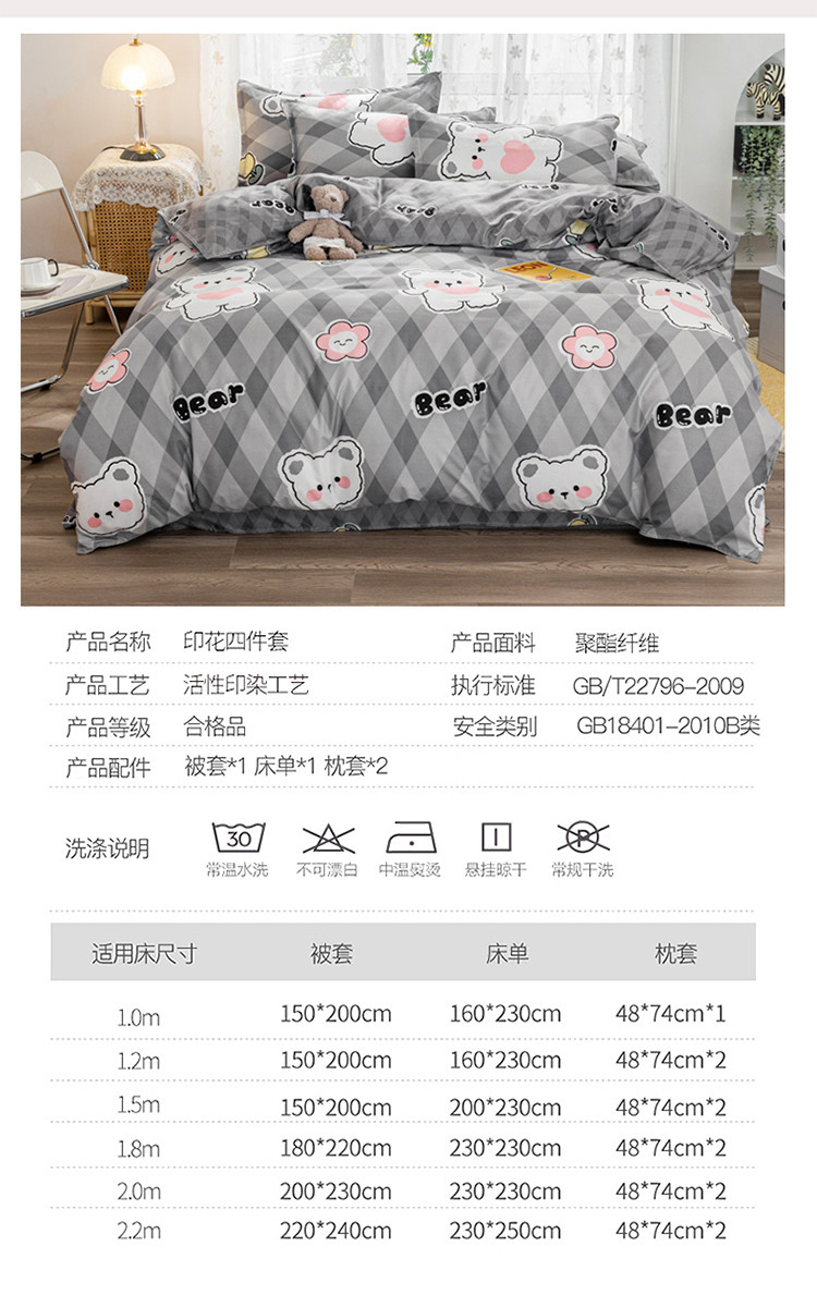 商品名称:妖妖家纺 2021新款芦荟棉印花四件套 绅士熊