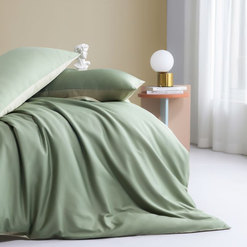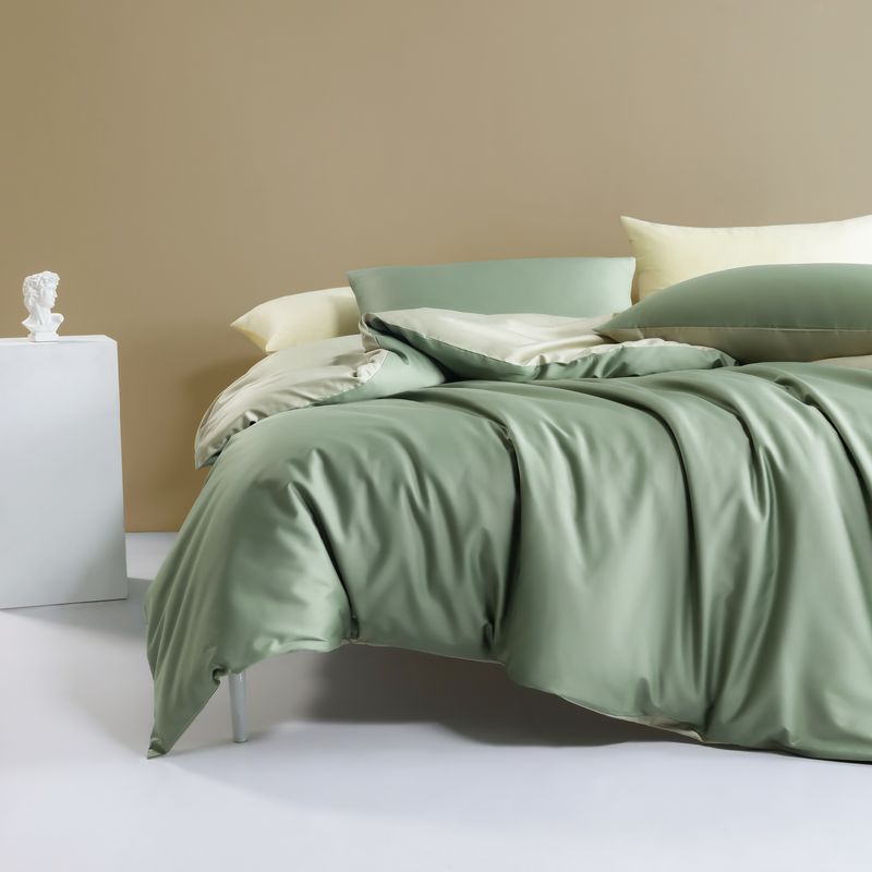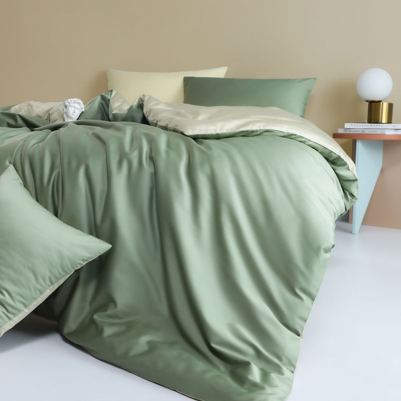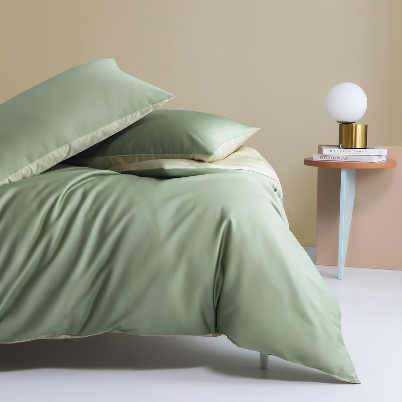 涞澳 2021新款全棉隐形拉链双拼款四件套 果青