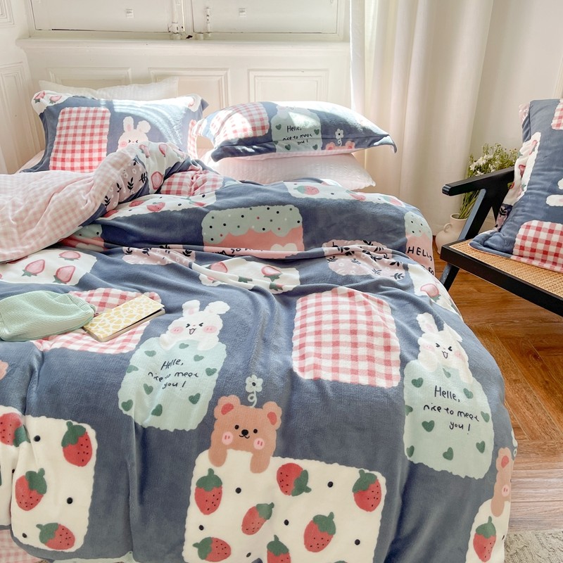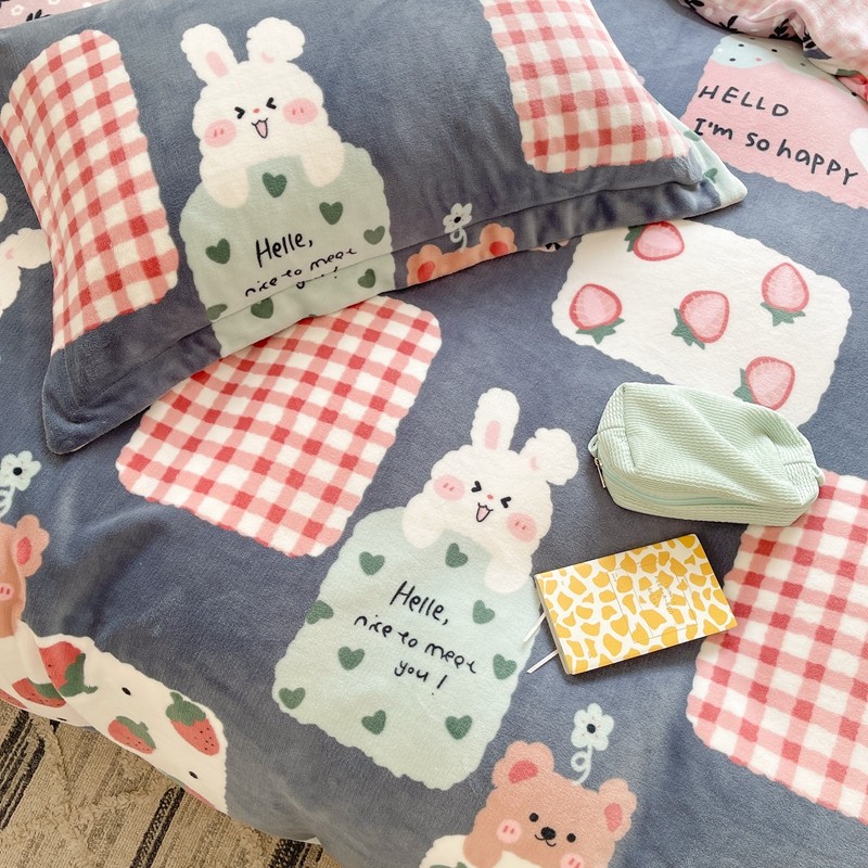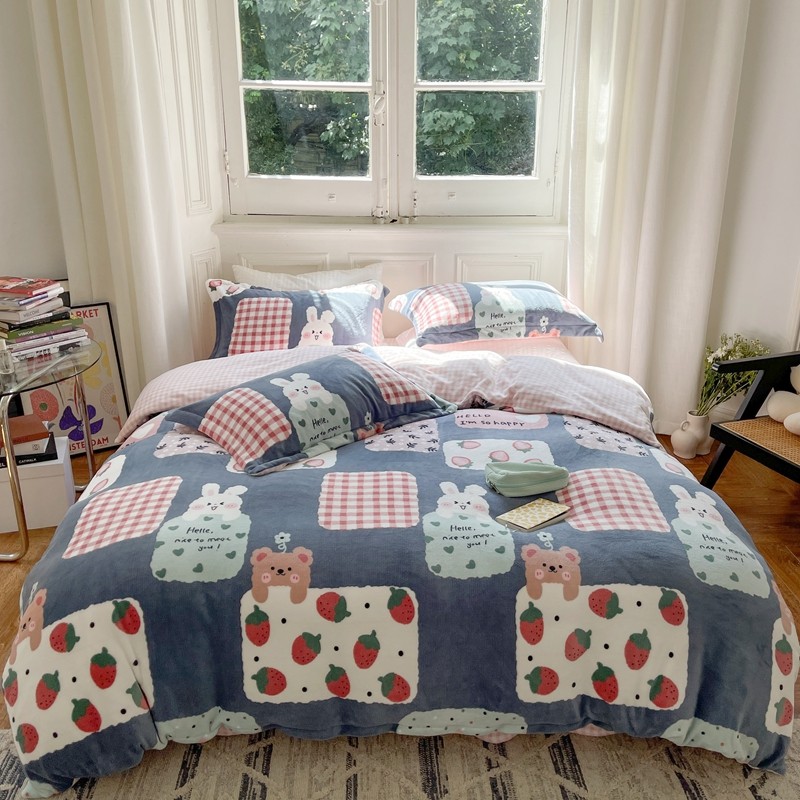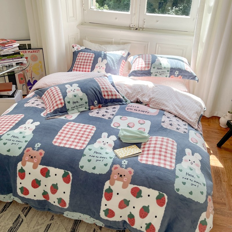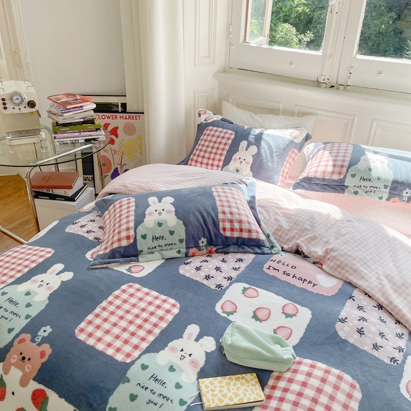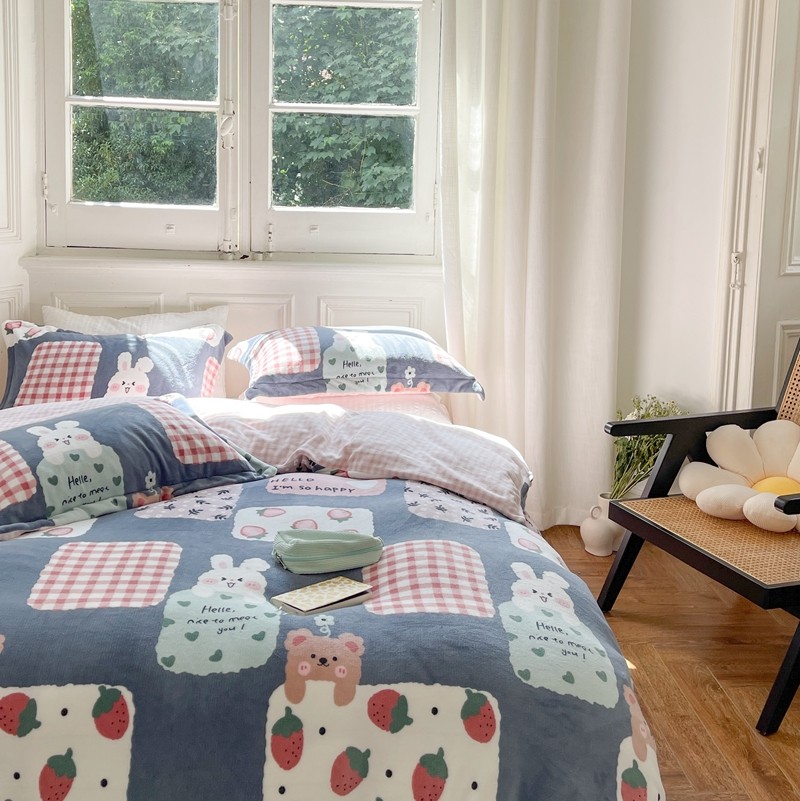 柚子 2021新款牛奶绒印花四件套 布丁兔