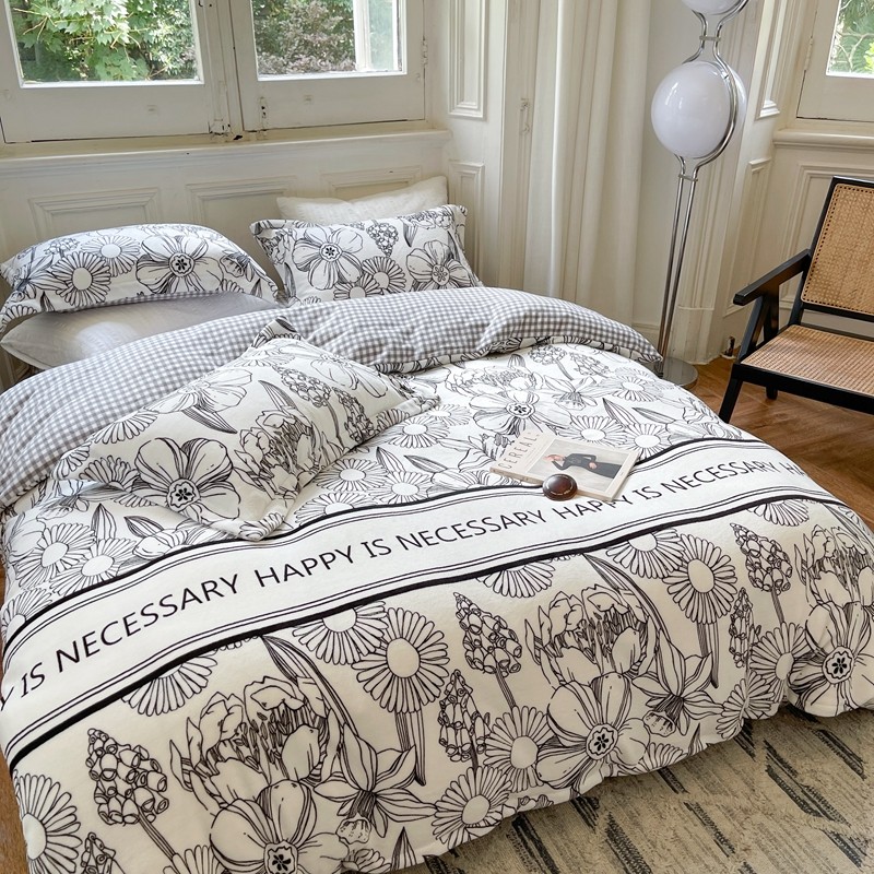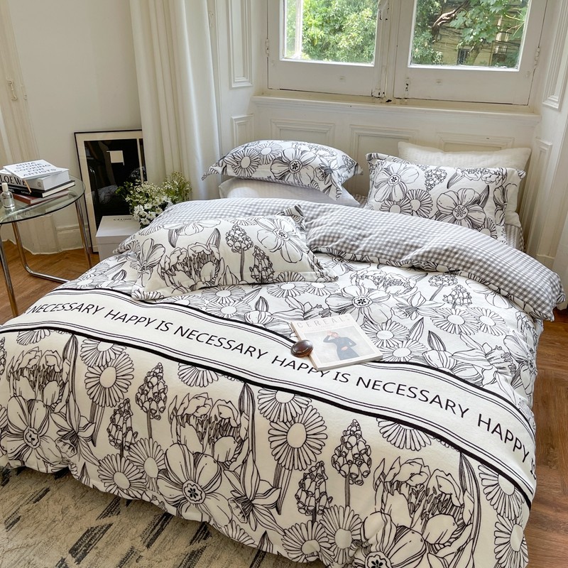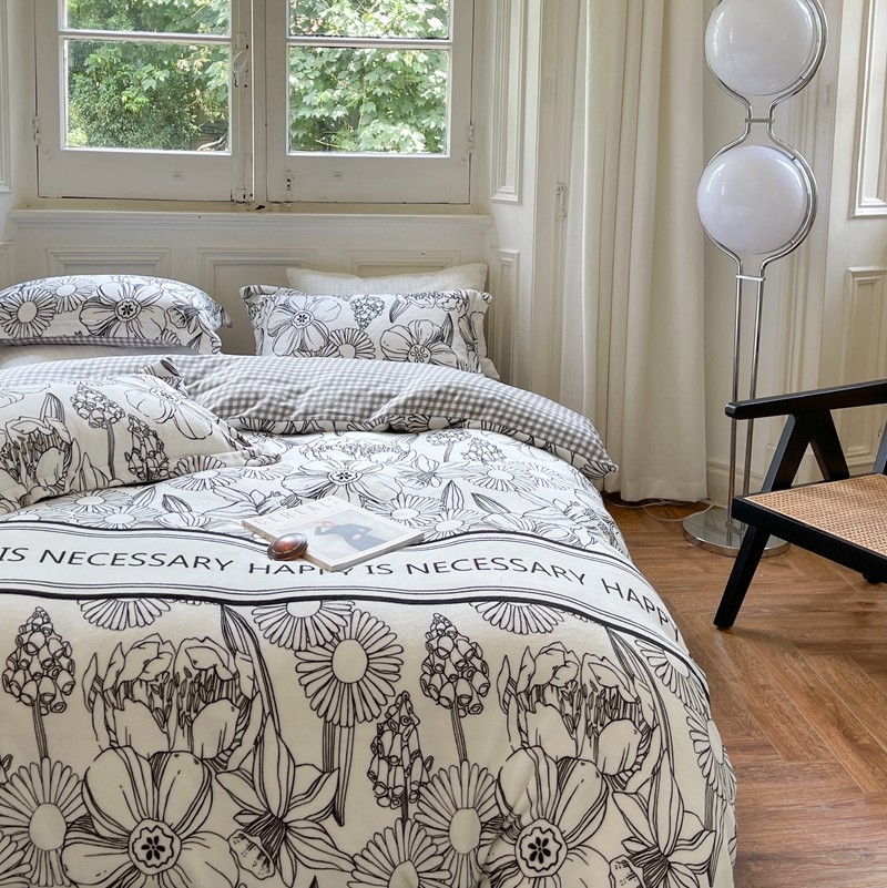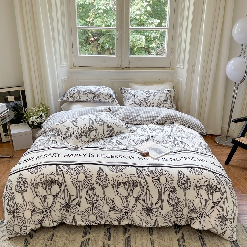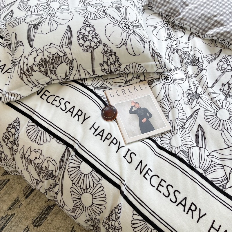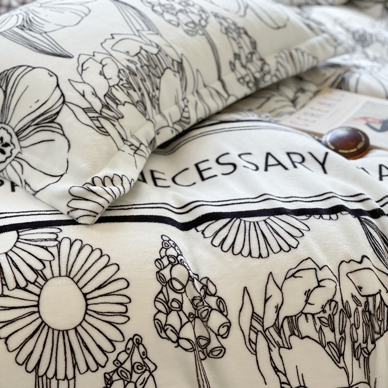 柚子 2021新款牛奶绒印花四件套 小花园