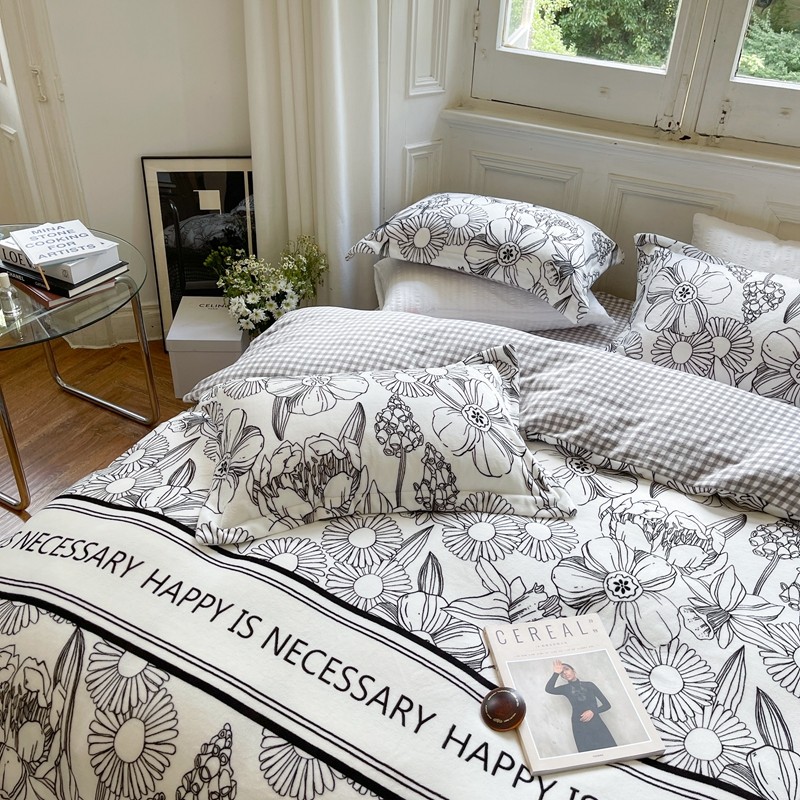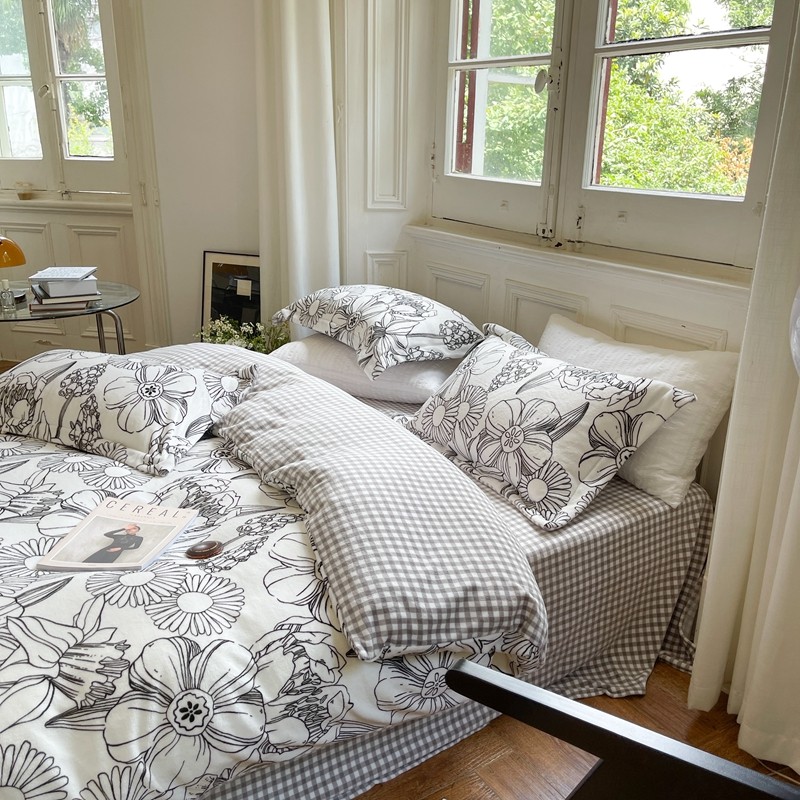 (总)柚子YOUTH 2025新款全棉双层纱华夫格提花暖绒四件套,馥郁花香,咖豹纹,兰格蜡笔画,玫瑰兔兔,拼图爱丽丝,ins咖格
