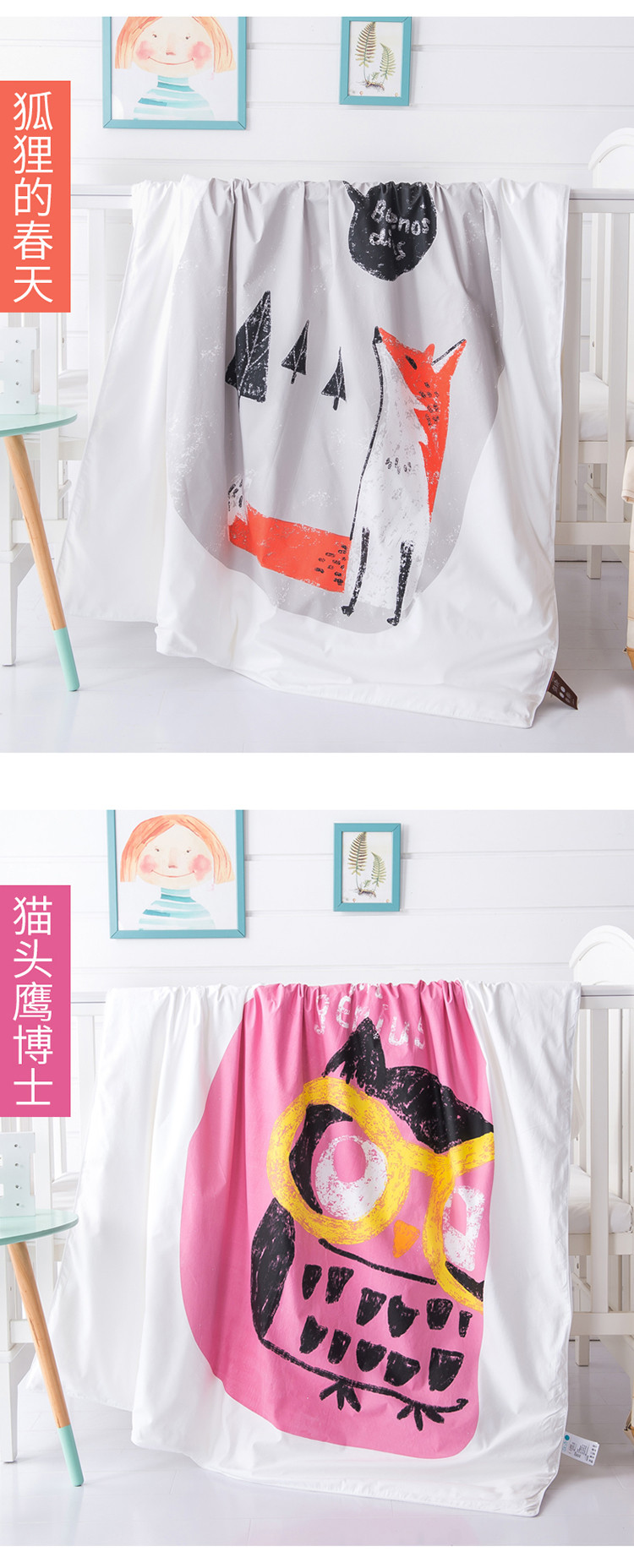 商品名称:香夫 新款60S加密贡缎儿童大版花可拆洗纯蚕丝被 猫头鹰博士