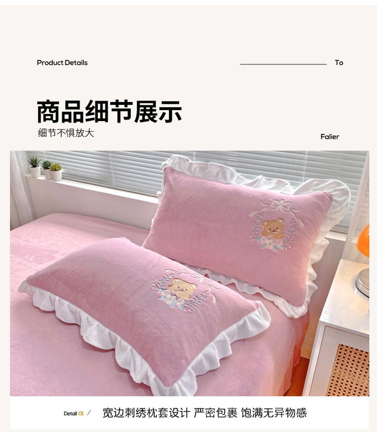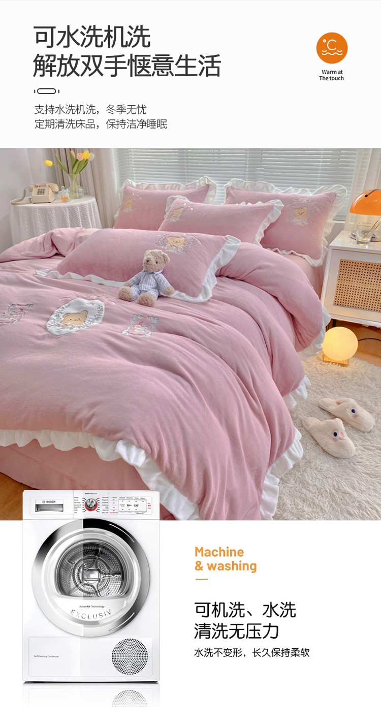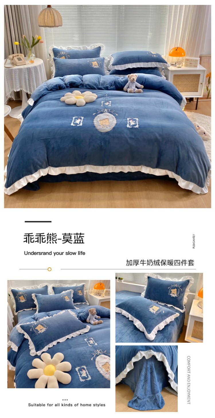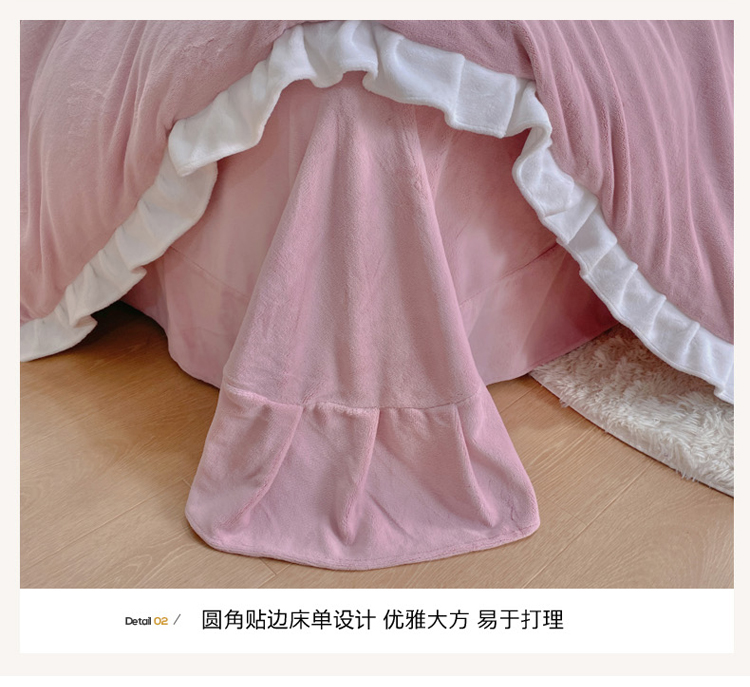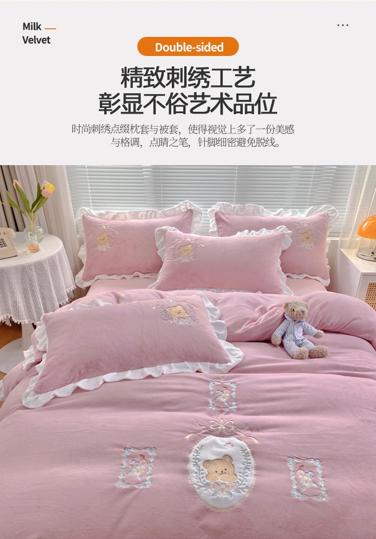 (总)星尚家纺 2024新款加厚保暖全消光牛奶绒夹棉床裙四件套-玫瑰之恋,粉玉,寐紫,浅蓝,水绿