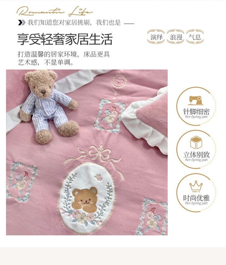 (总)星尚 高品质牛奶绒绣花四件套加厚法莱宝宝婴儿绒-乖乖熊