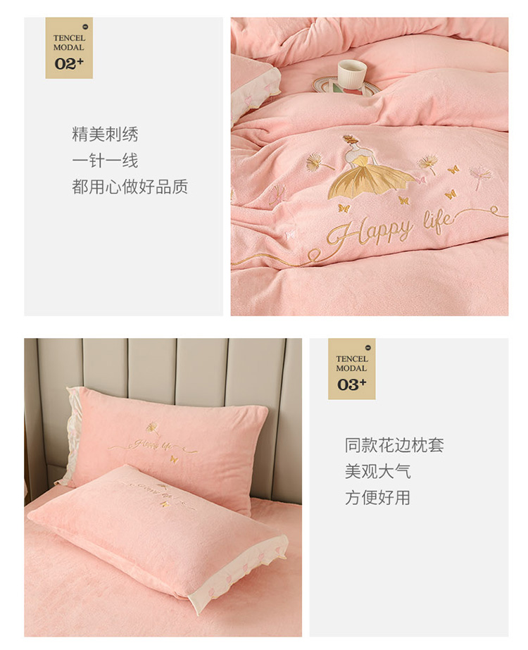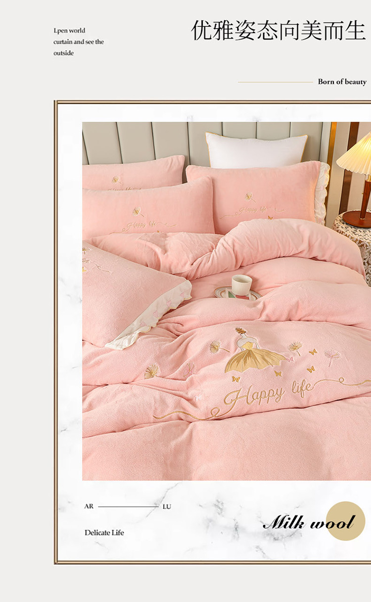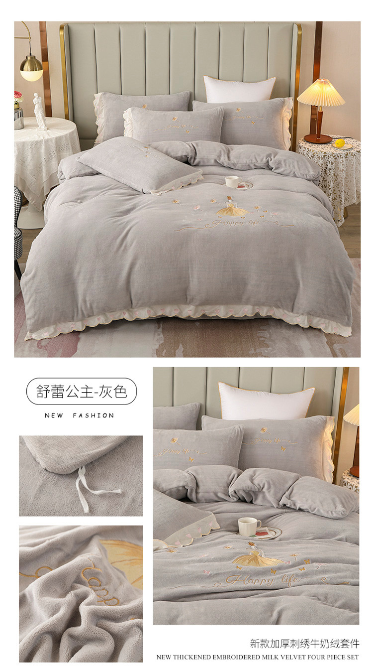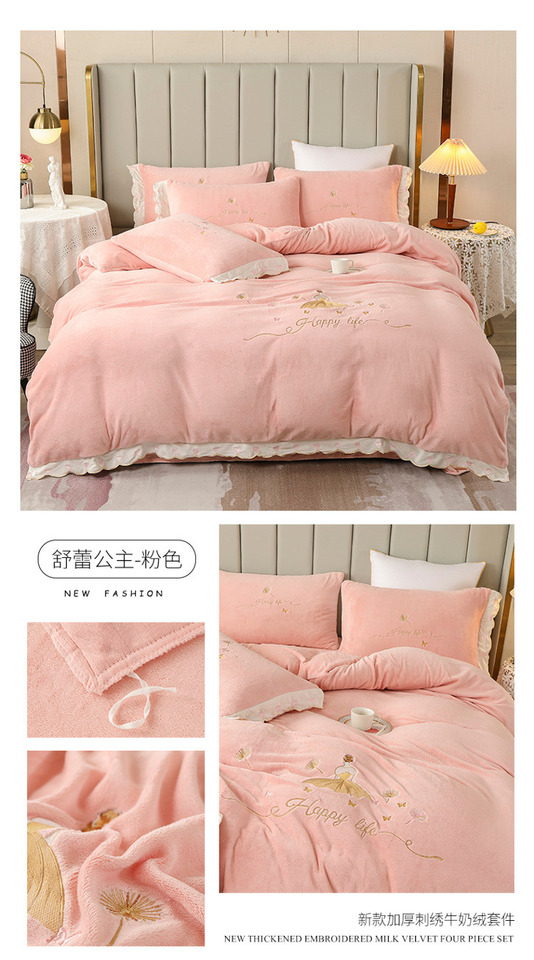 (总)沐辰 2021新款牛奶绒刺绣四件套-舒蕾公主