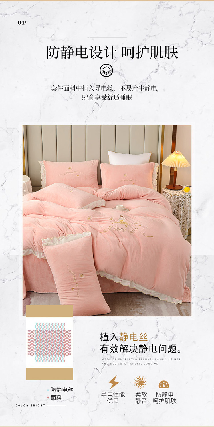 商品名称:(总)沐辰 2021新款牛奶绒刺绣四件套-舒蕾公主