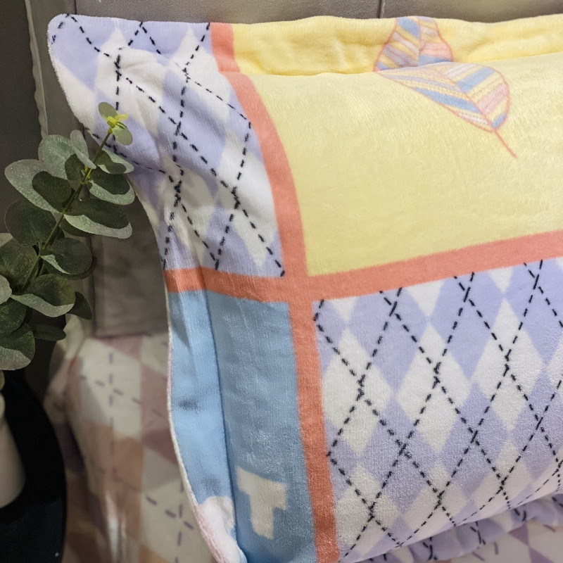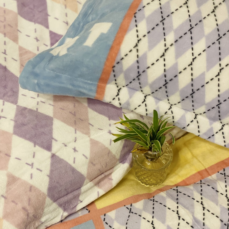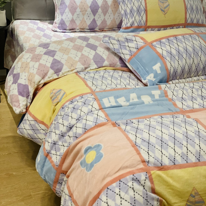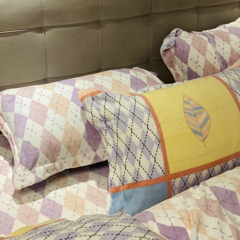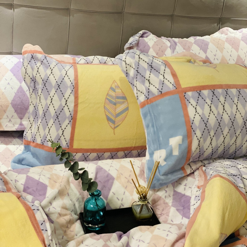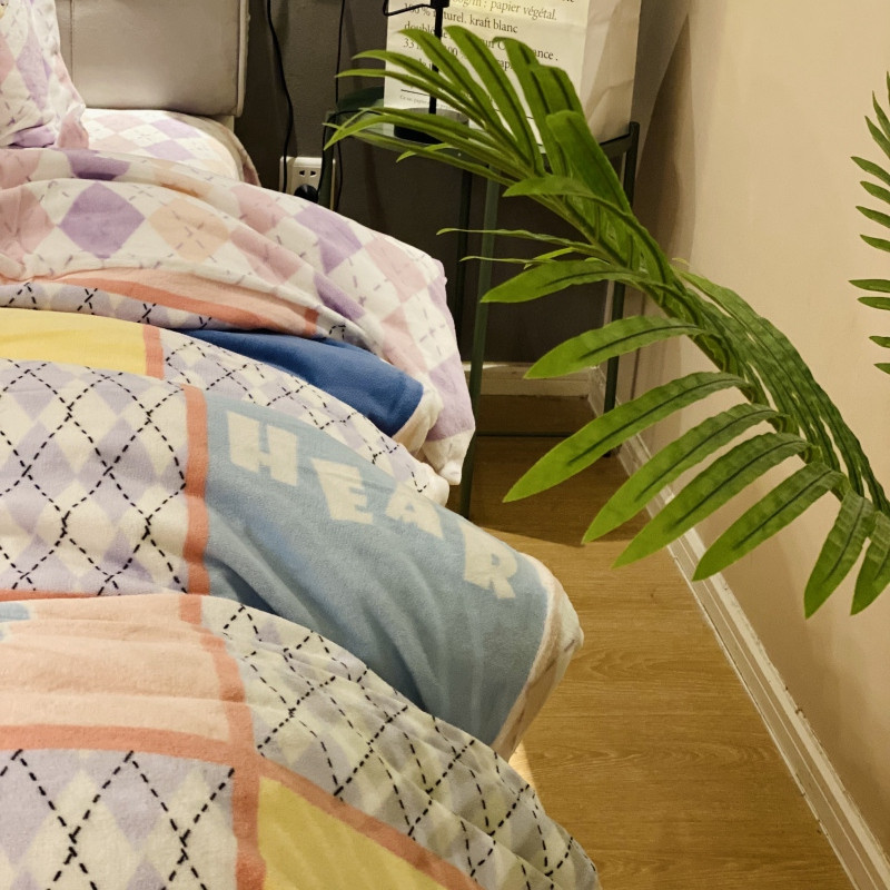 棉生活 2021新款小清新牛奶绒四件套 多彩菱形