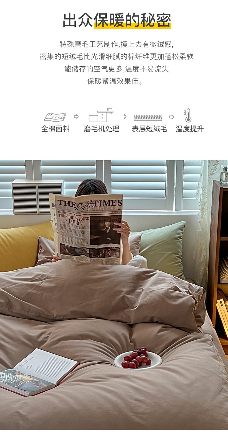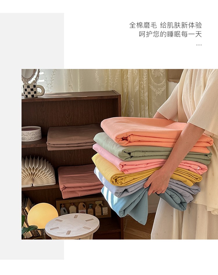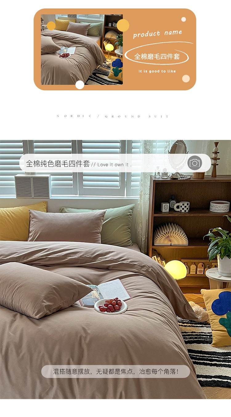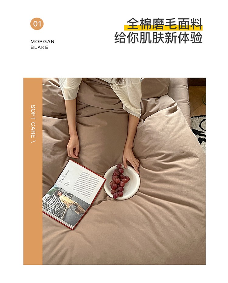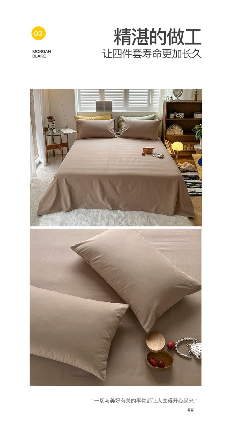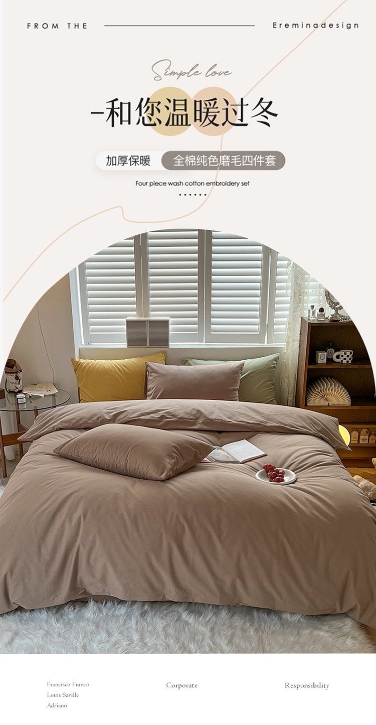 (总)希文 2021新款全棉磨毛纯色四件套