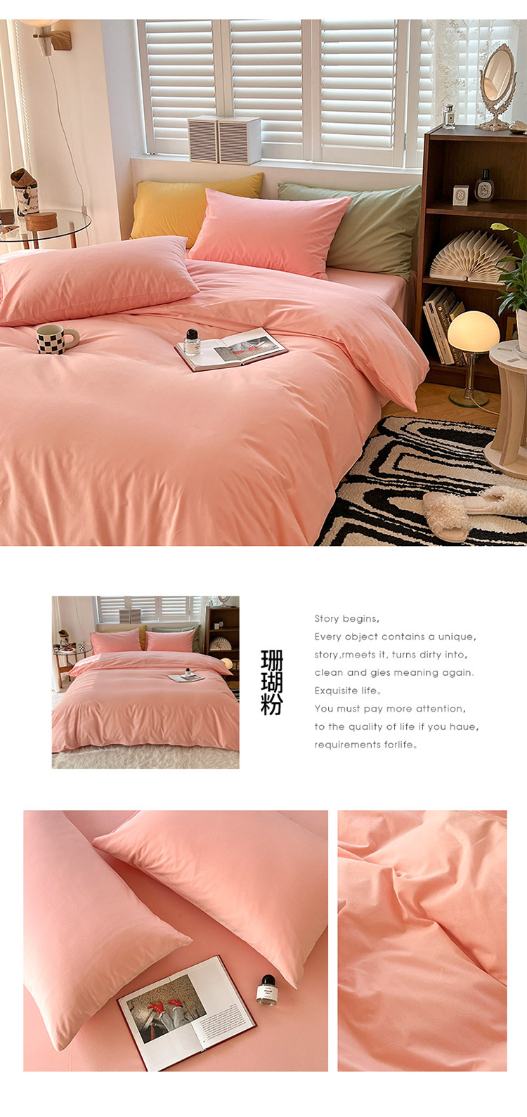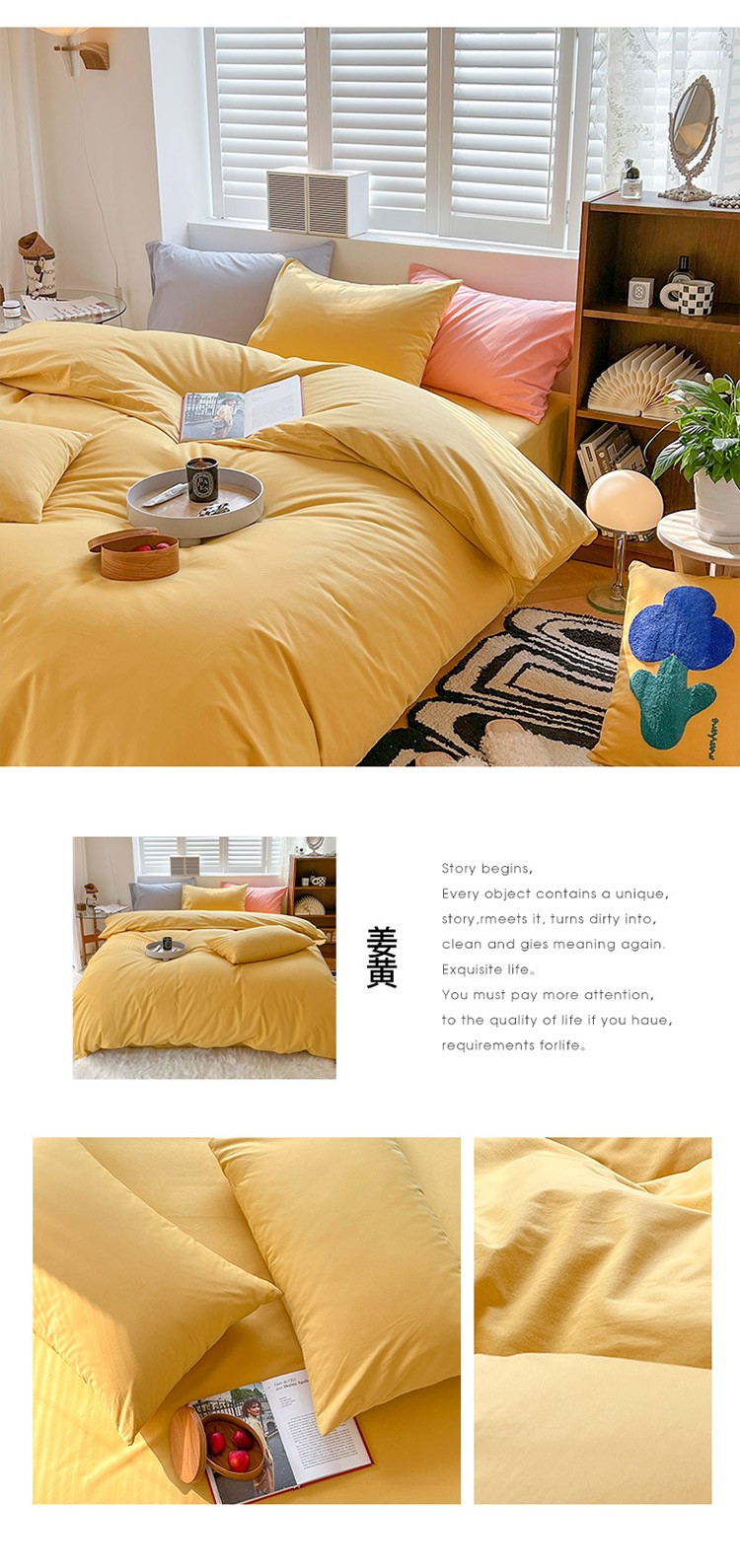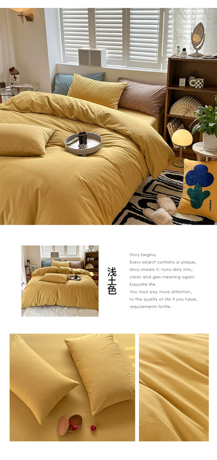 (总)XIWEN-希文家纺 2025新款全棉色织立体提花四件套,素条-粉,素条-黑,素条-黄,素条-卡其,素条-兰