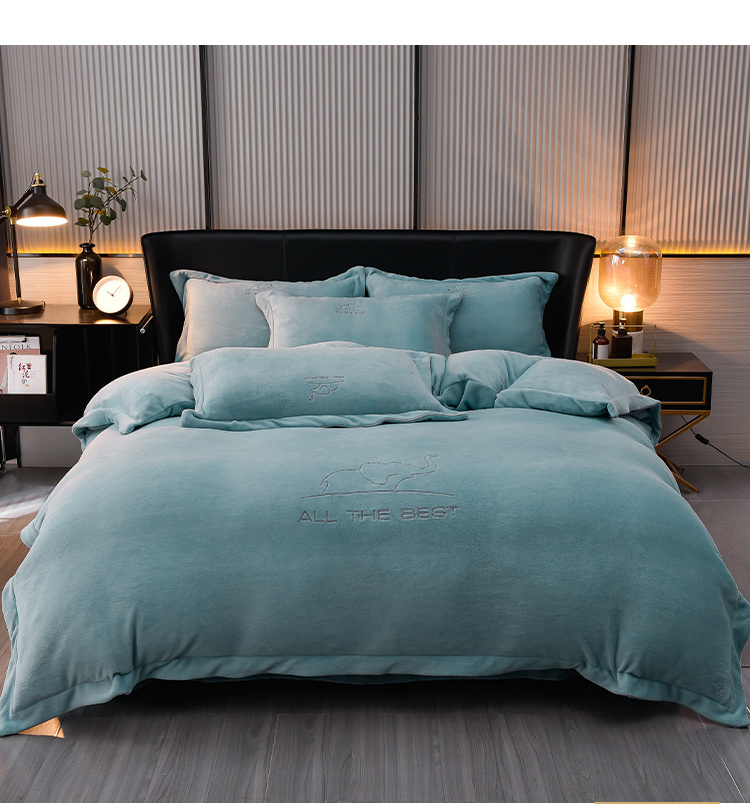 米奈家居 2024新款A类婴儿绒四件套有质检报告小象 迷雾绿