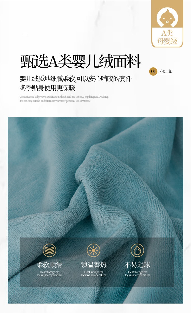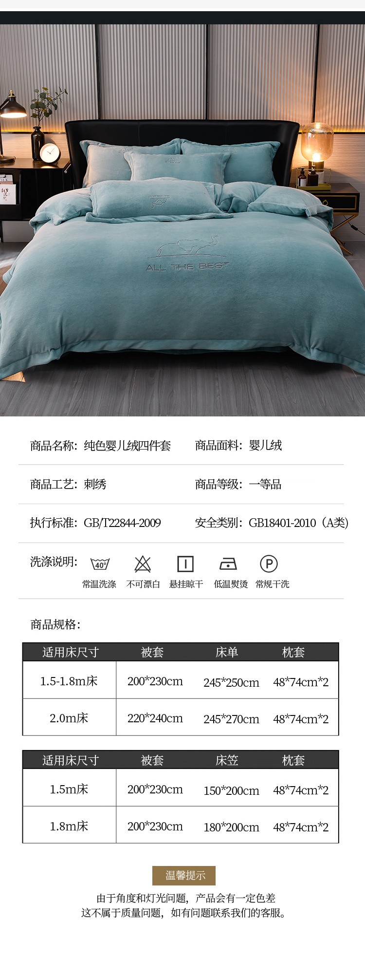 (总)米奈家居 2025新款A类高克重婴儿绒四件套-吉娜系列,淡雅粉,豆沙绿,孔雀绿,奶昔白+浅灰,浅杏色,绅士灰,西瓜粉,芋泥紫