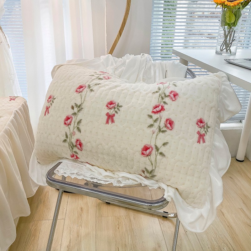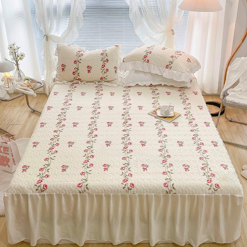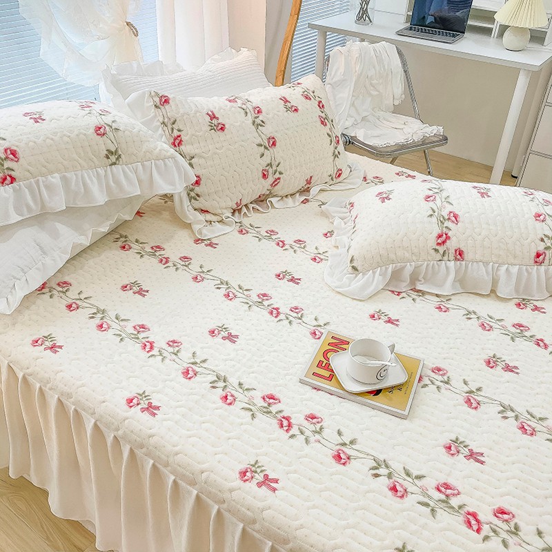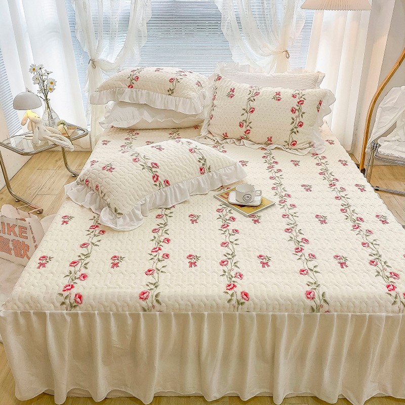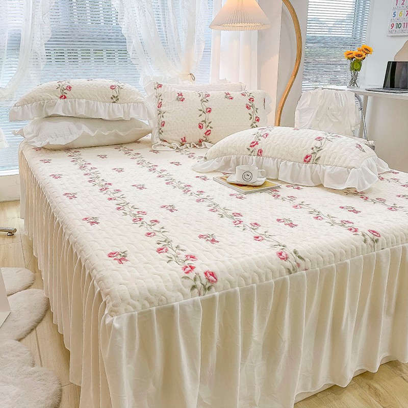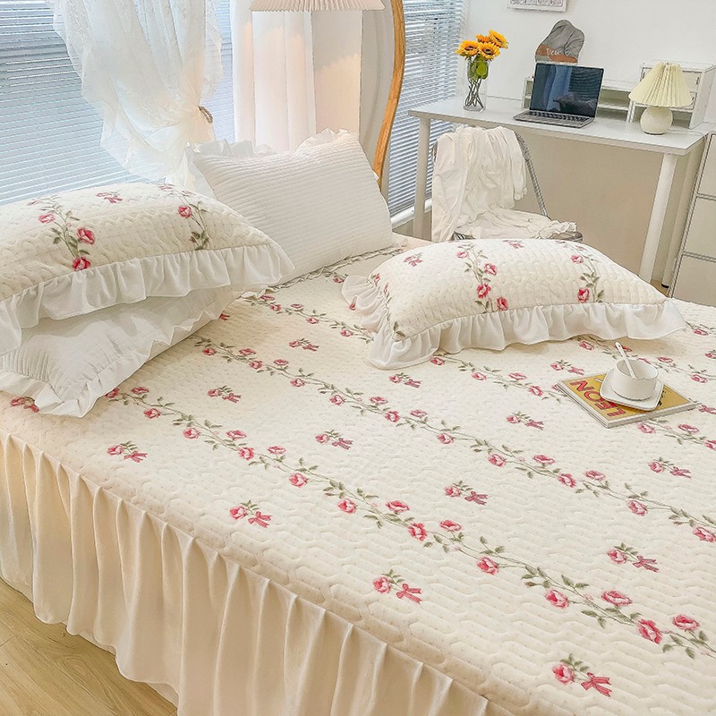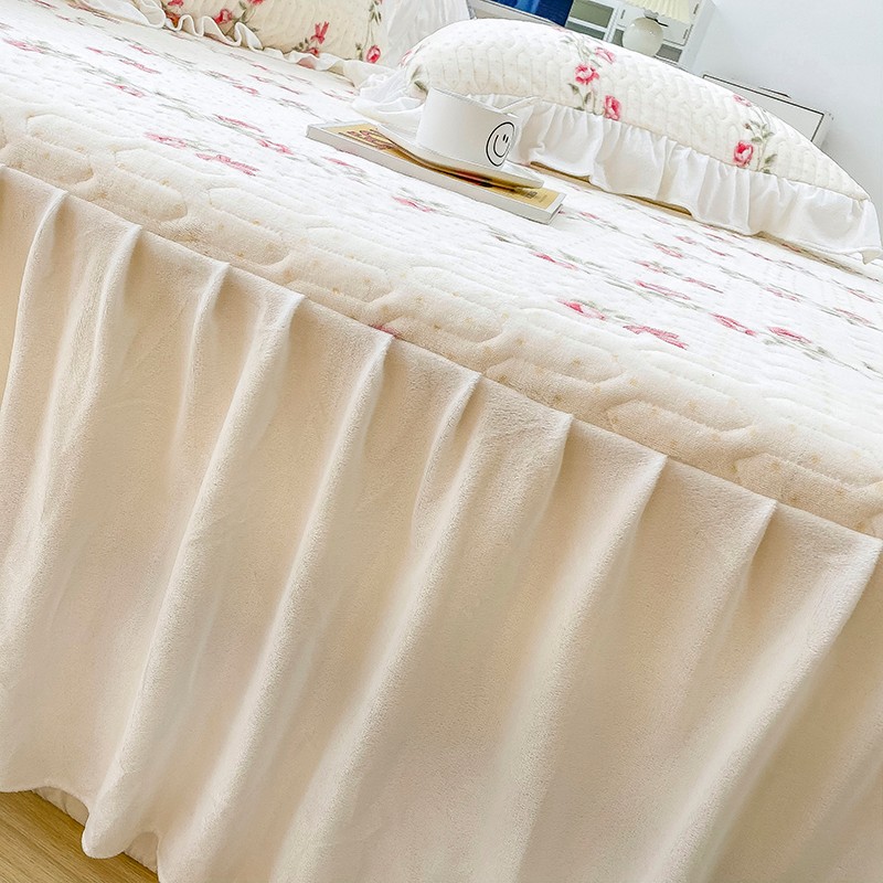 米莱家纺 2021新款牛奶绒夹棉床裙三件套 淡雅花蜜