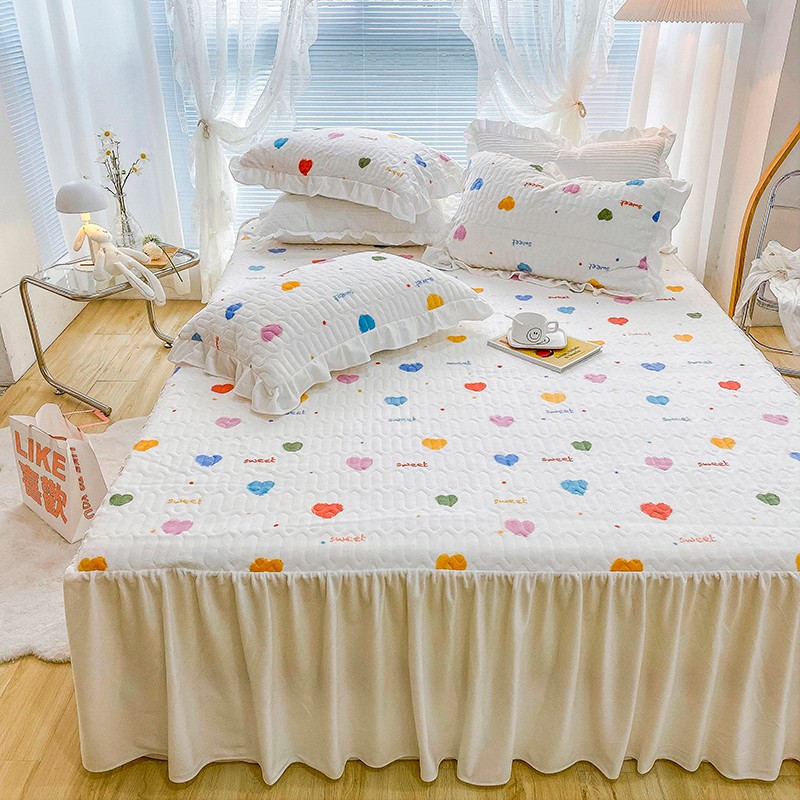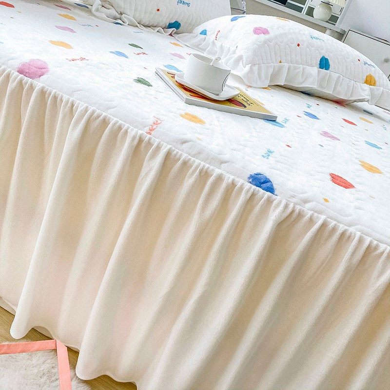 米莱家纺 2021新款牛奶绒夹棉床裙三件套 心岛