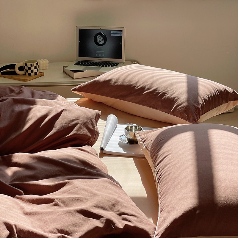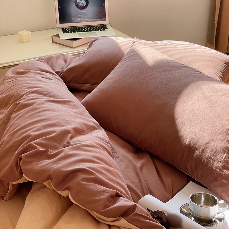 当前位置: 91家纺网 > 商品网购 > 床品套件 > 四件套 > 水洗棉四件套 > 窝米 2022春季新品素色双拼水洗棉系列四件套 欧蕾咖啡双拼