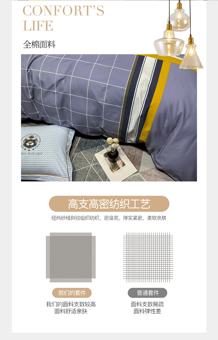 当前位置: 91家纺网 > 商品网购 > 床品套件 > 四件套 > 全棉普通四件套 > 金爱家 2023新款全棉13372简约条格四件套 威廉格里