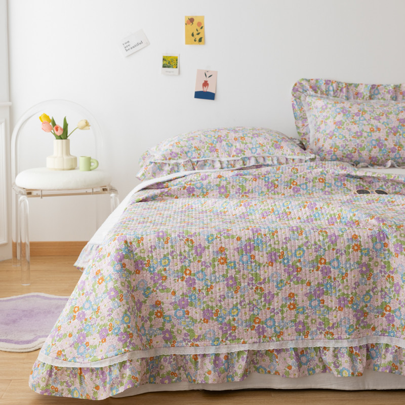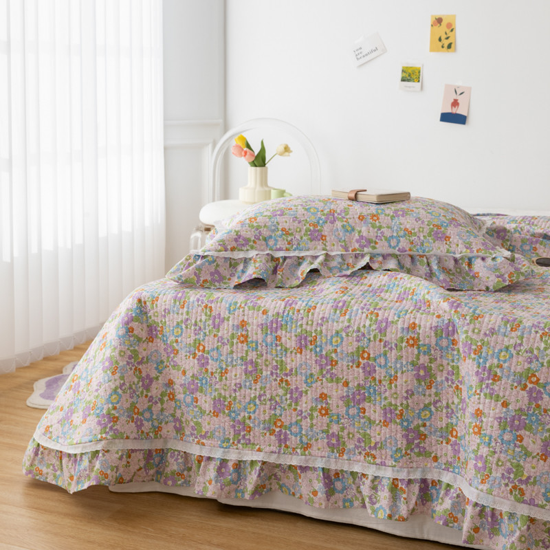 商品名称:淑女公社家纺 2022新款纯棉13372韩版镂空小花边床盖 姹紫嫣红