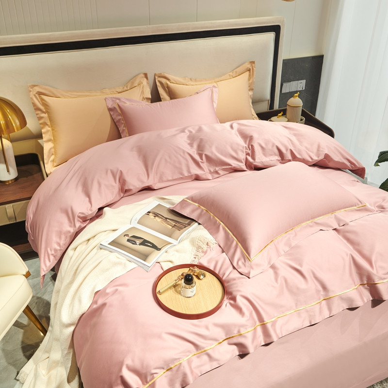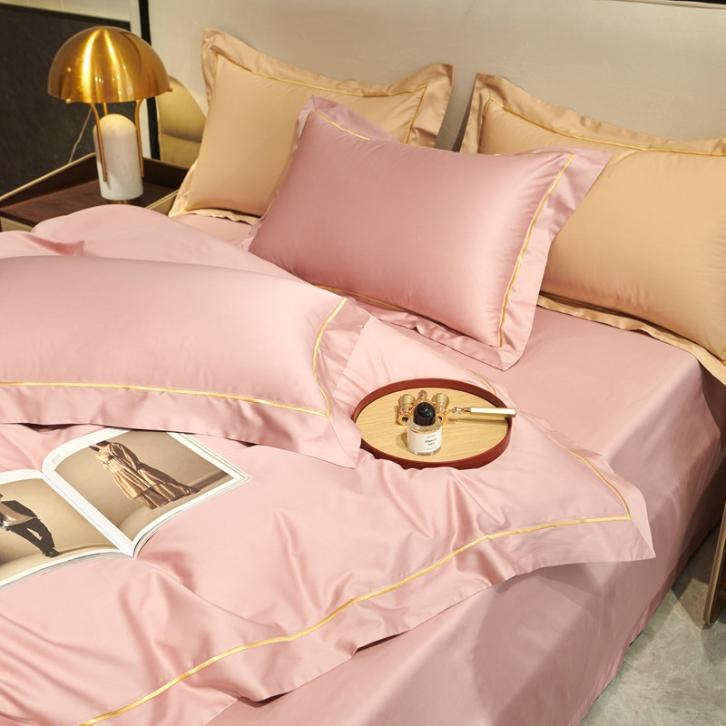 (总)禧澜庭 2024新款纯棉全棉斜纹四件套埋线轻奢三件套,艾玉粉,帝都灰,和风蓝,焦糖橙,米卡其,维克绿