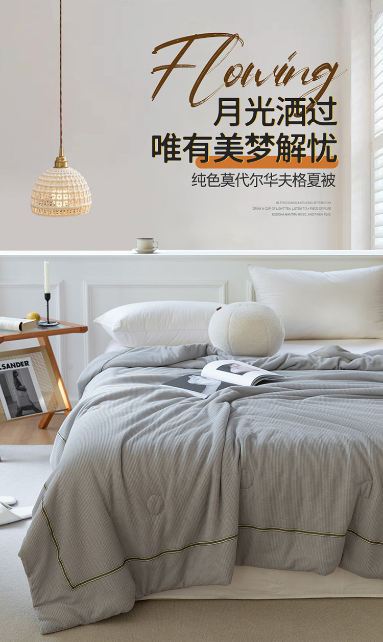 商品名称:木堇 2022新款纯色莫代尔华夫格夏被 流光灰