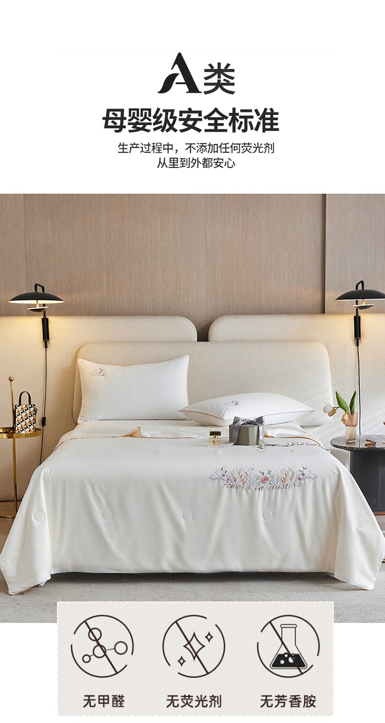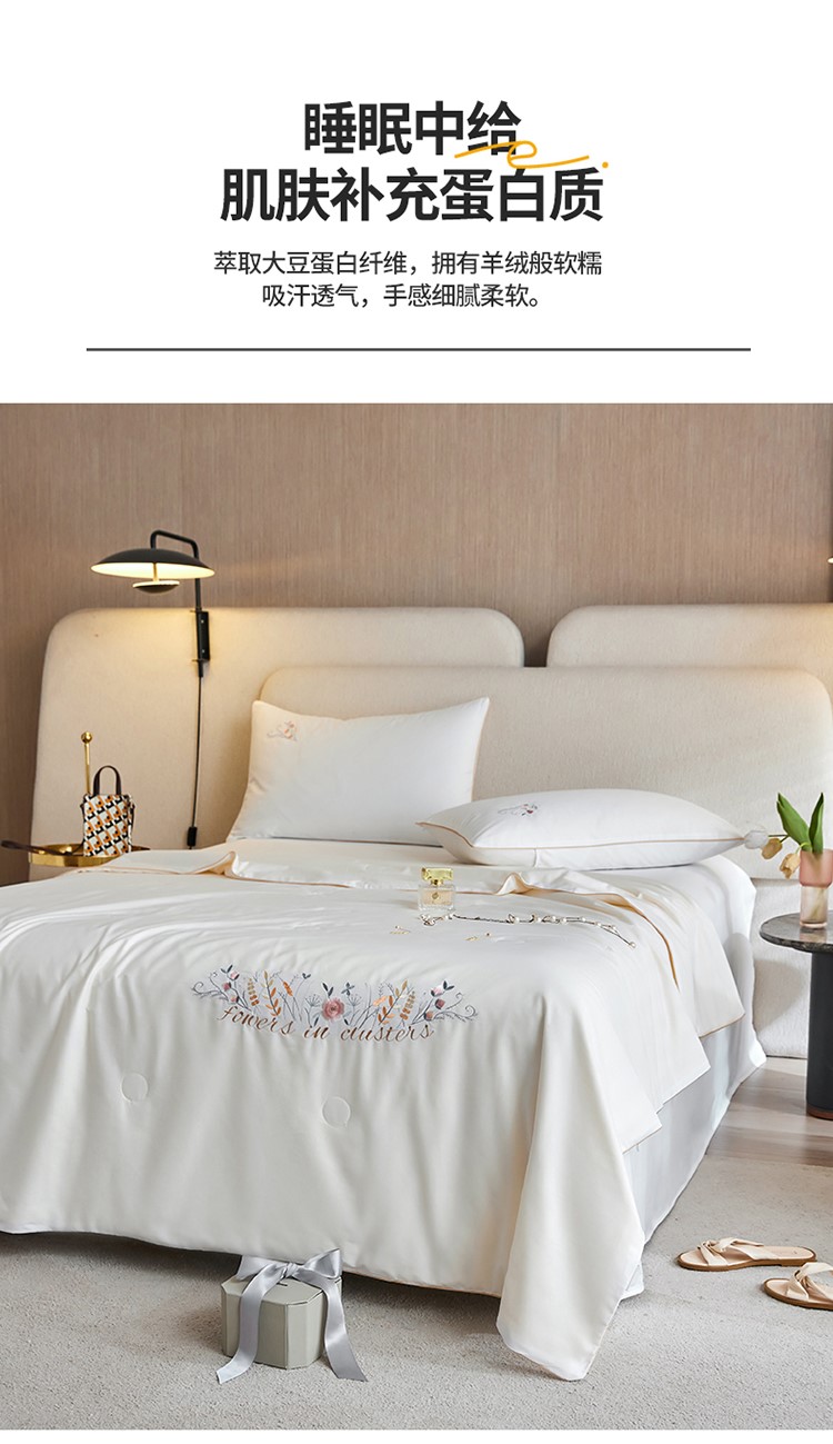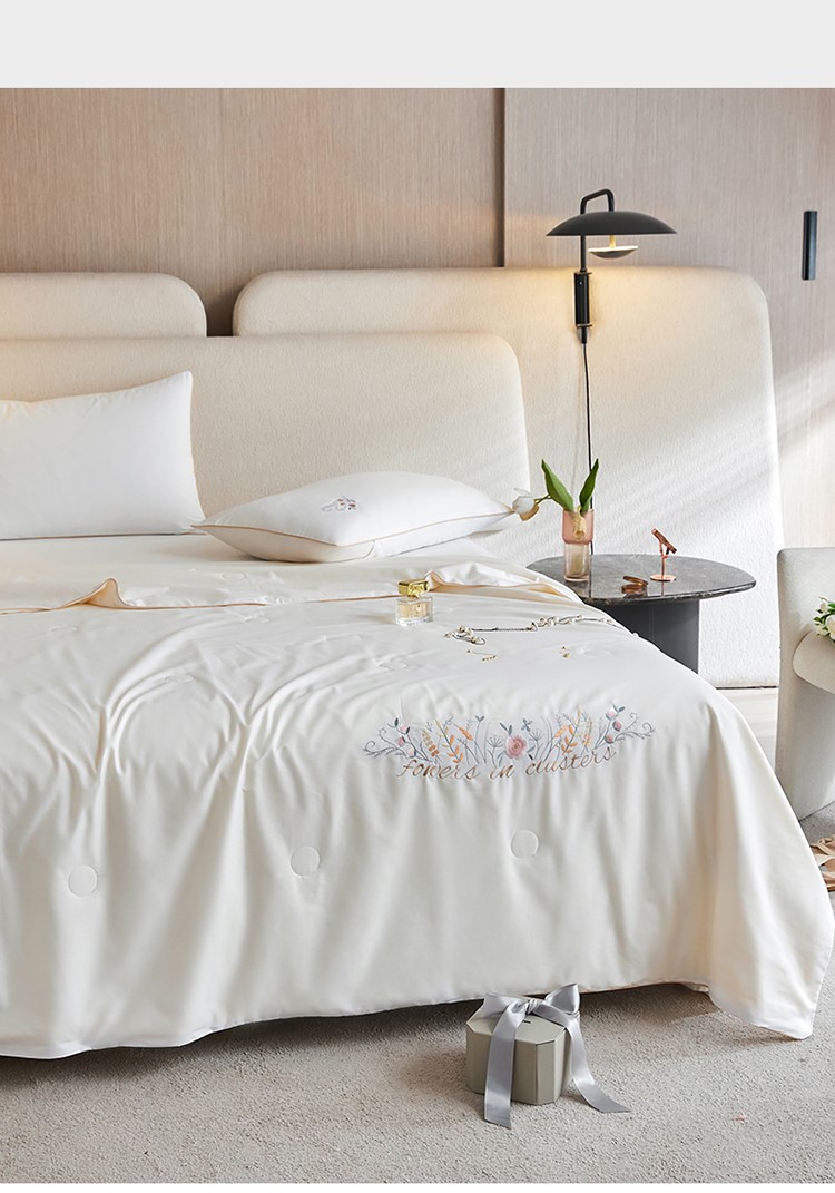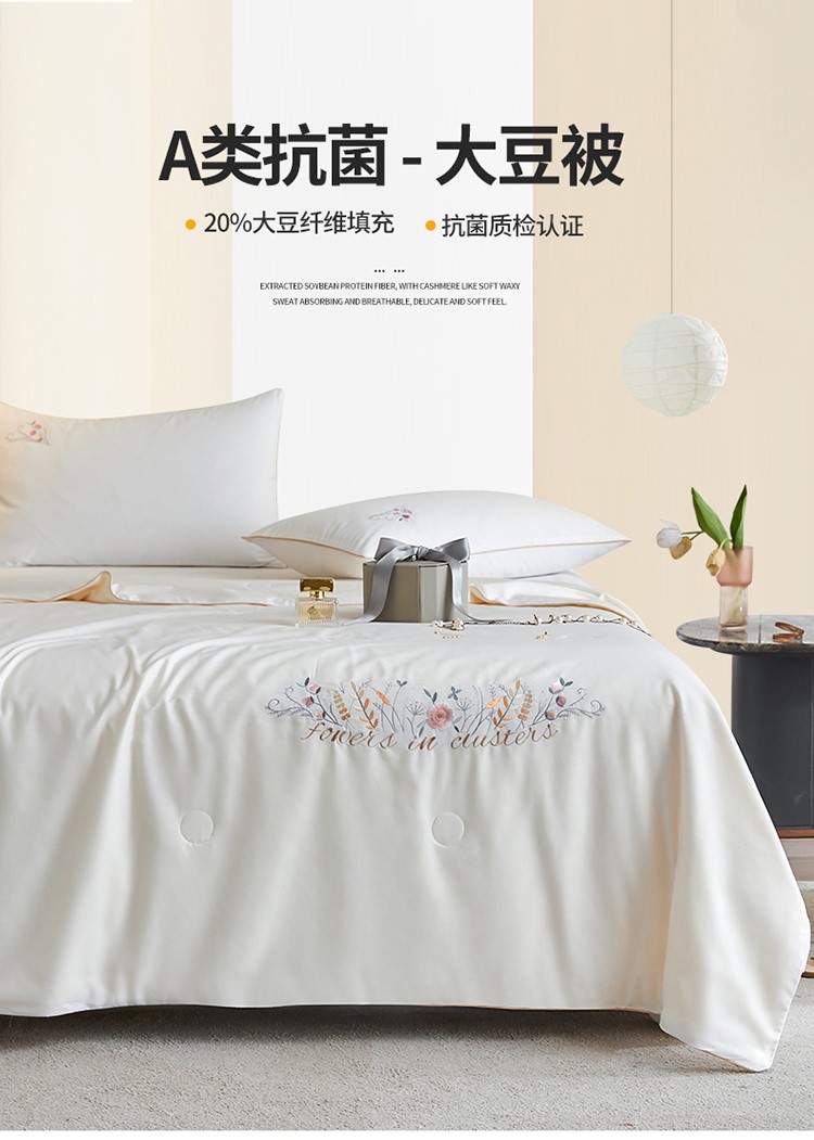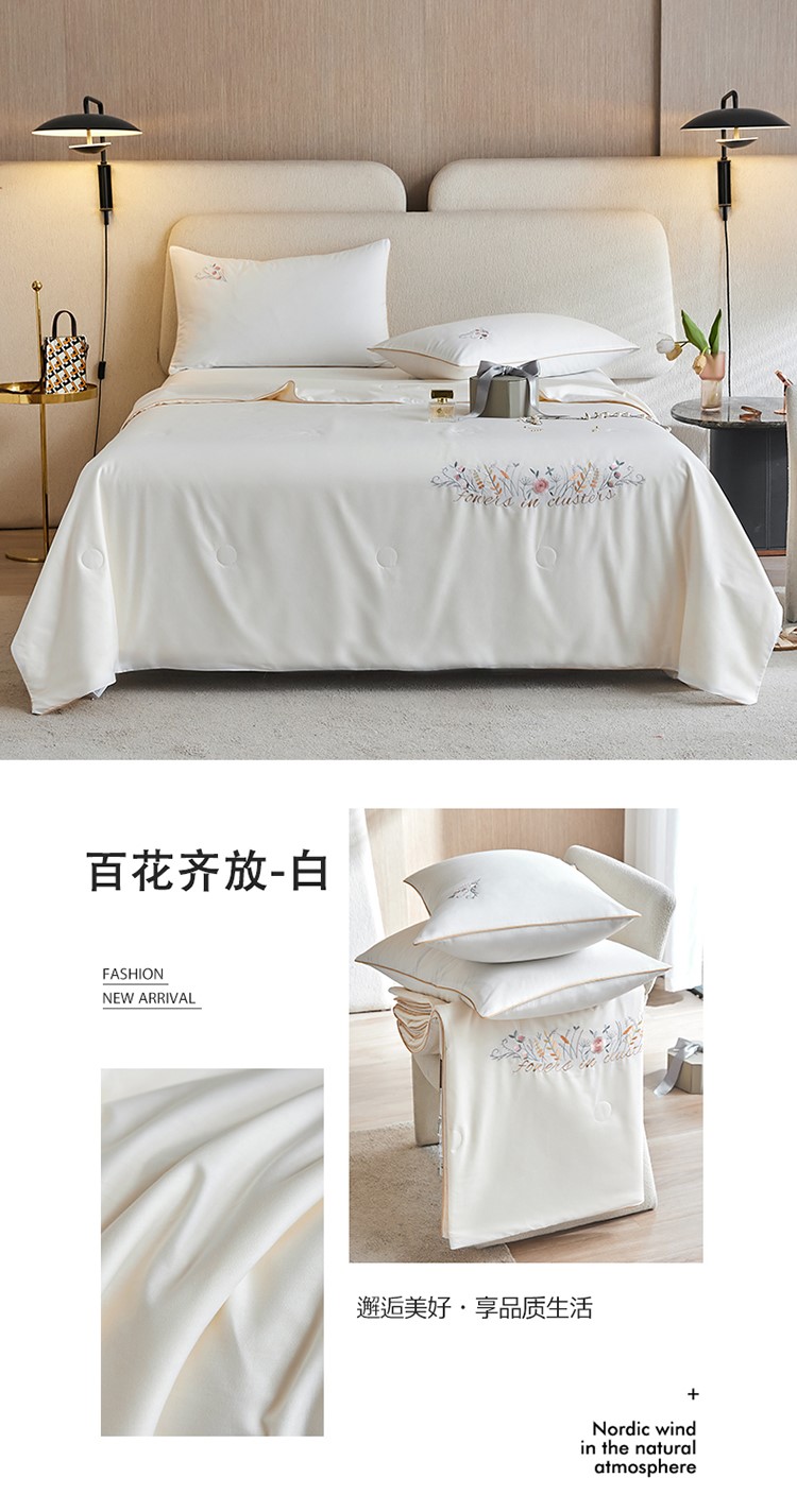 当前位置: 91家纺网 > 商品网购 > 床品套件 > 四件套 > 夏被四件套 > 头等舱 2022新款全棉A类纯色大豆抗菌防螨夏被百花齐放-白