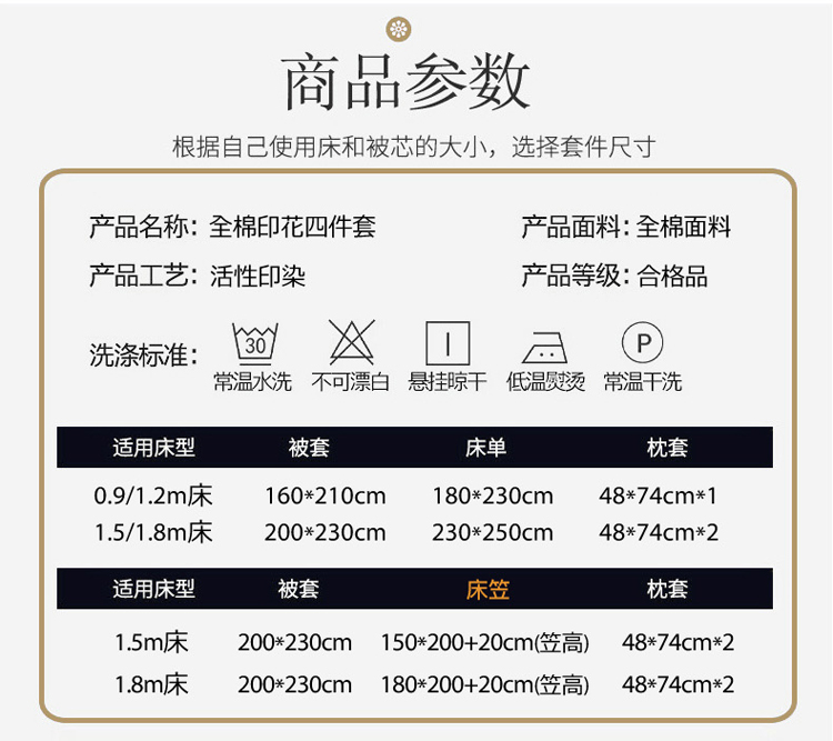 商品名称:(总)盛馨 2023新款小清新北欧风精梳棉全棉四件套