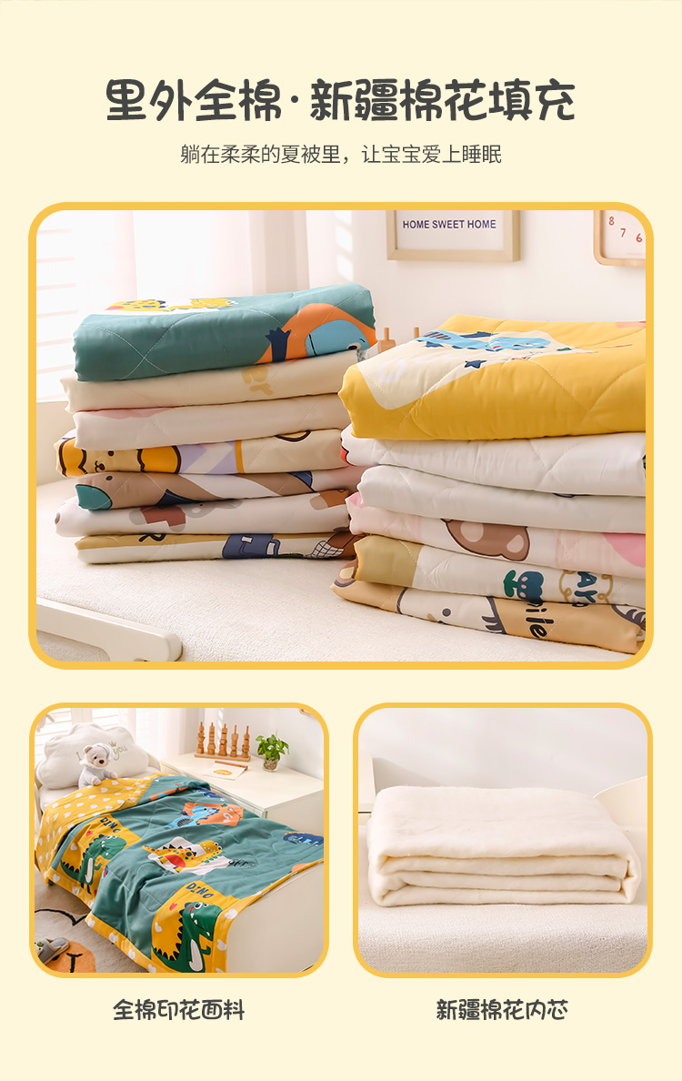(总)芭伯妮 2025新款40支全棉新疆棉花幼儿园儿童夏被,白桃公主,虎头虎脑,嘉年华,开学季,恐龙家族-黄,恐龙家族-绿,奶油兔,小兔叽,幸福宝贝,宝宝巴士-蓝,宝宝巴士-米,动漫恐龙-米,欢乐萌熊,里德熊,彩虹喵,蜡笔画,汽车乐园