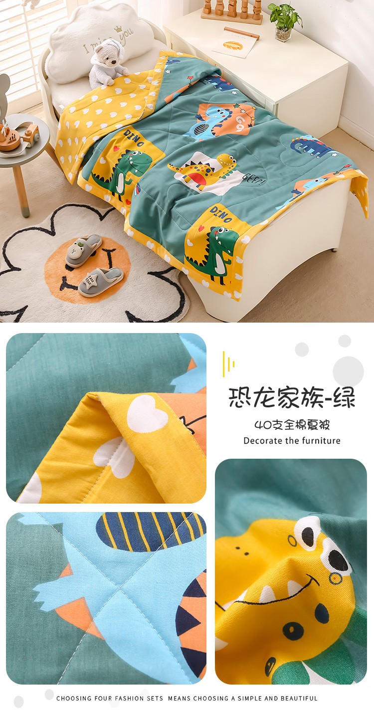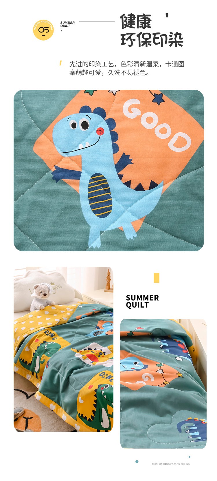 芭伯妮2025新款40支全棉新疆棉花幼儿园儿童夏被恐龙家族绿